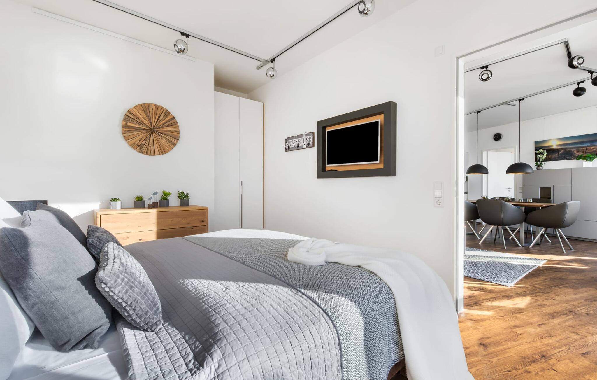 Stilfulde møbler af høj kvalitet dominerer alle rum og emmer af hygge. Det ultramoderne køkken med kogeø er udstyret med mærkevarer og lader intet tilbage at ønske. At lave mad her er en afslappende oplevelse, da du altid kan se skibene passere forbi. De komfortable sofaer i opholdsområdet inviterer dig til at slappe af eller se LCD-tv.