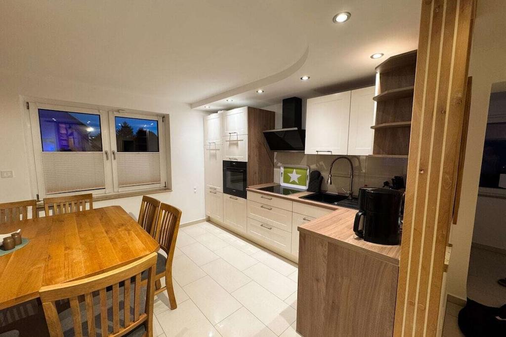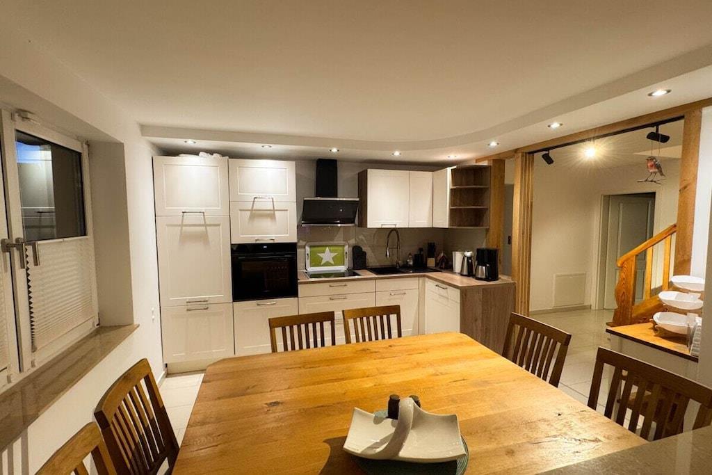 Velkommen til feriehuset "Kala" i Penzlin! Dette nyrenoverede hus tilbyder tre stilfuldt møblerede soveværelser, to moderne badeværelser med badekar og/eller bruser samt en hyggelig stue med pejs og åbent køkken. De eksklusive møbler inkluderer et fuldt udstyret køkken med opvaskemaskine. Udenfor inviterer en 600 m² stor grund med græsplæne, grill, veranda og rummelig terrasse dig til at slappe af. Der er en ladestation til elbiler. Huset ligger i et roligt område, men alligevel godt forbundet med offentlig transport. Indkøbsmuligheder ligger direkte i landsbyen. Her kan du nyde afslapning og komfort i hjertet af Mecklenburgs sødistrikt!