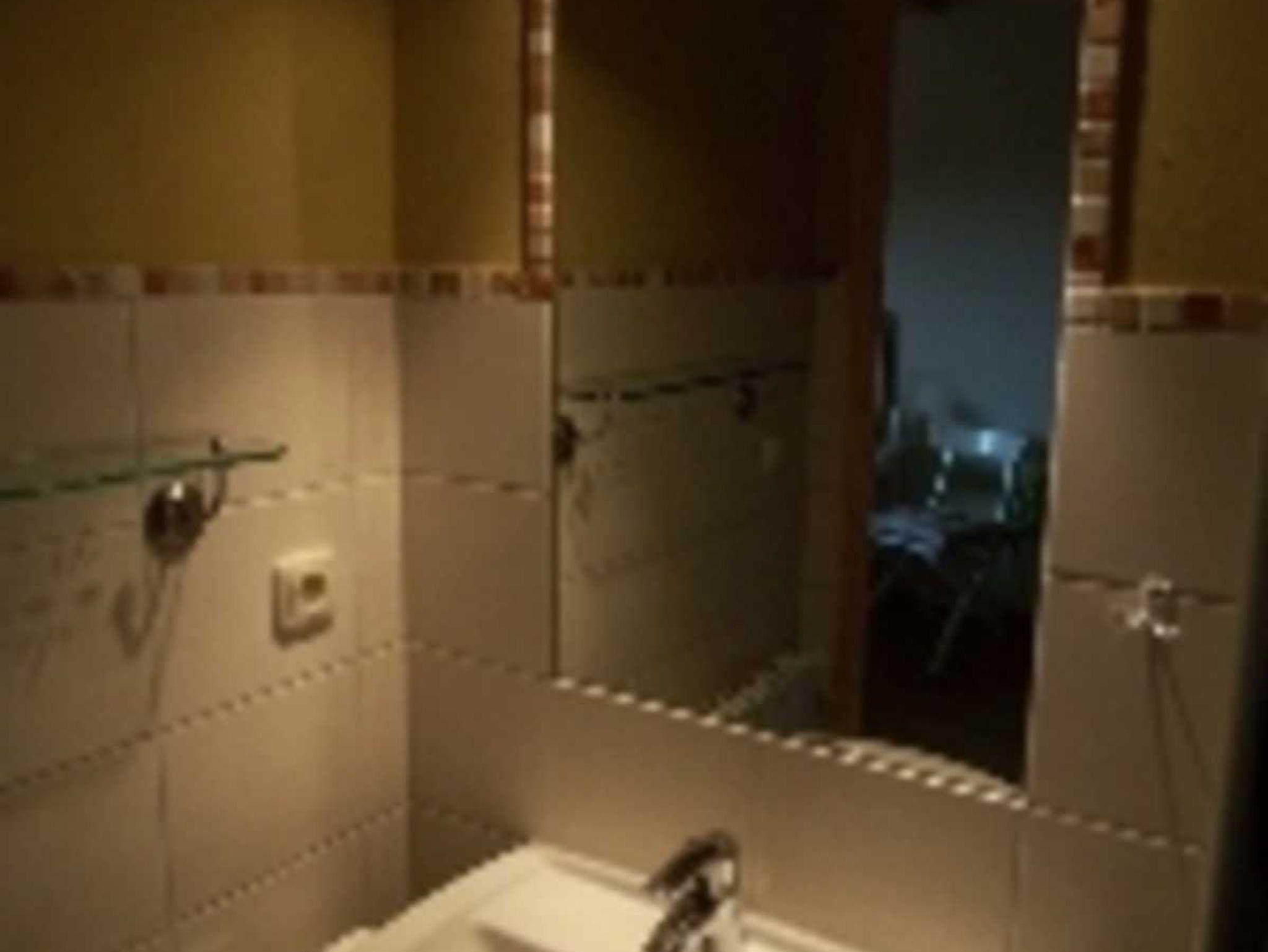 Das Doppelzimmer ist ein Maisonette Zimmer. Im unteren Bereich befinden sich das Doppelbett, vier Stühle, ein Tisch und ein Lesestuhl sowie der Einbauschrank, das Bad mit WC und Dusche. Sie bewegen sich auf dielenähnlichem Laminatboden.