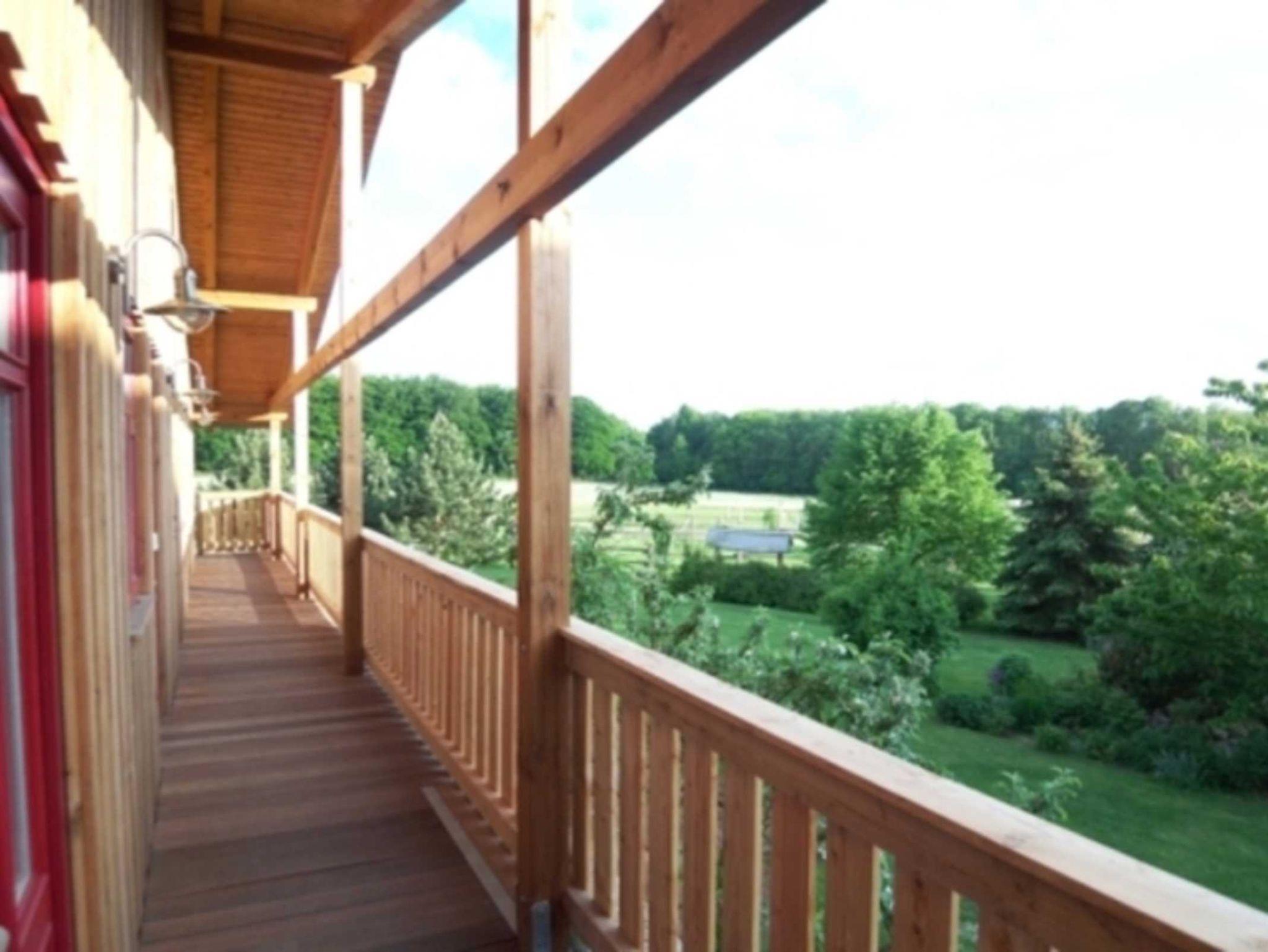 Durchfahren Sie die Allee alter roter und weißer Kastanienbäume, wenn Sie dann annehmen jetzt kommt kein Haus mehr, dann sind sie auf dem Landhof zur Meierei angekommen. Eingebettet zwischen Wiese, Wald und Feldern finden Sie das backsteinerne Wohnhaus, ein kleines backsteinernes Häuschen und das 2008 neu gebaute Ferienhaus mit den roten Holzfenstern und dem typisch mecklenburgischen Holzgiebel. In der Ferienwohnung und vier liebevoll eingerichteten DZ finden ca. 16 Personen eine gemütliche Schlaf- und Wohnstatt. Vorbeiziehende Rad- und Wandersleute können im duftenden Heulager Quartier finden. Ob Knüppelkuchen am Lagerfeuer, einem reichhaltigen Frühstücksbuffett, mit hofeigenen und regionalen Produkten, fallen Sie Wort wörtlich nicht vom Fleische. Der Gastraum mit seinem urigen Holzofen lädt zur gemütlichen Runde mit einem frisch gezapften Bier am Schachtisch oder zum Kartenspiel ein. Kinder erkunden den riesigen Naturspielplatz. Heulager, Kletterbäume, Angelteich mit Paddelkahn, Pferde, Katzen, Hund, Kaninchen und Hühner wollen entdeckt, gefüttert und gestreichelt werden.