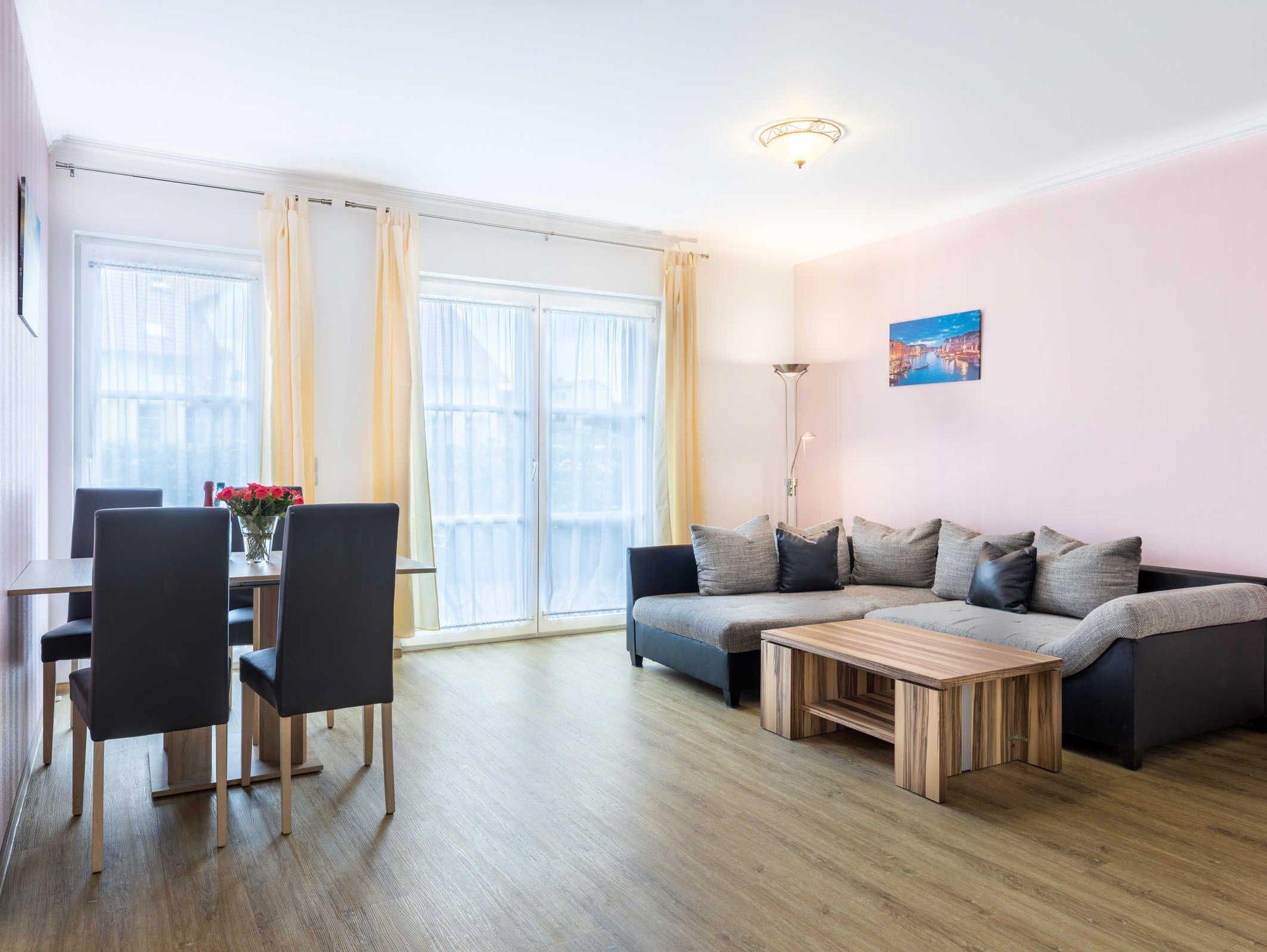 Die großzügige und ebenerdige Ferienwohnung Dorothea befindet sich im Ergeschoss des Ostseeferienhauses Drachenflieger. Die Ferienwohnung verfügt über ein separtes Schlafzimmer mit Doppelbett und Kleiderschrank, einen Wohn- Essbereich mit umfangreich ausgestatteter Küchenzeile (Kühlschrank mit Gefrierfach, 4- Platten- Herd, Backofen, Kaffeemaschine, Wasserkocher, Toaster) sowie einen Essbereich und Sitzecke mit ausziehbarer bequemer Schlafcouch. Vom Wohnbereich gelangen Sie auf die eigene angeschlossene Terrasse. Bad mit Dusche und WC.