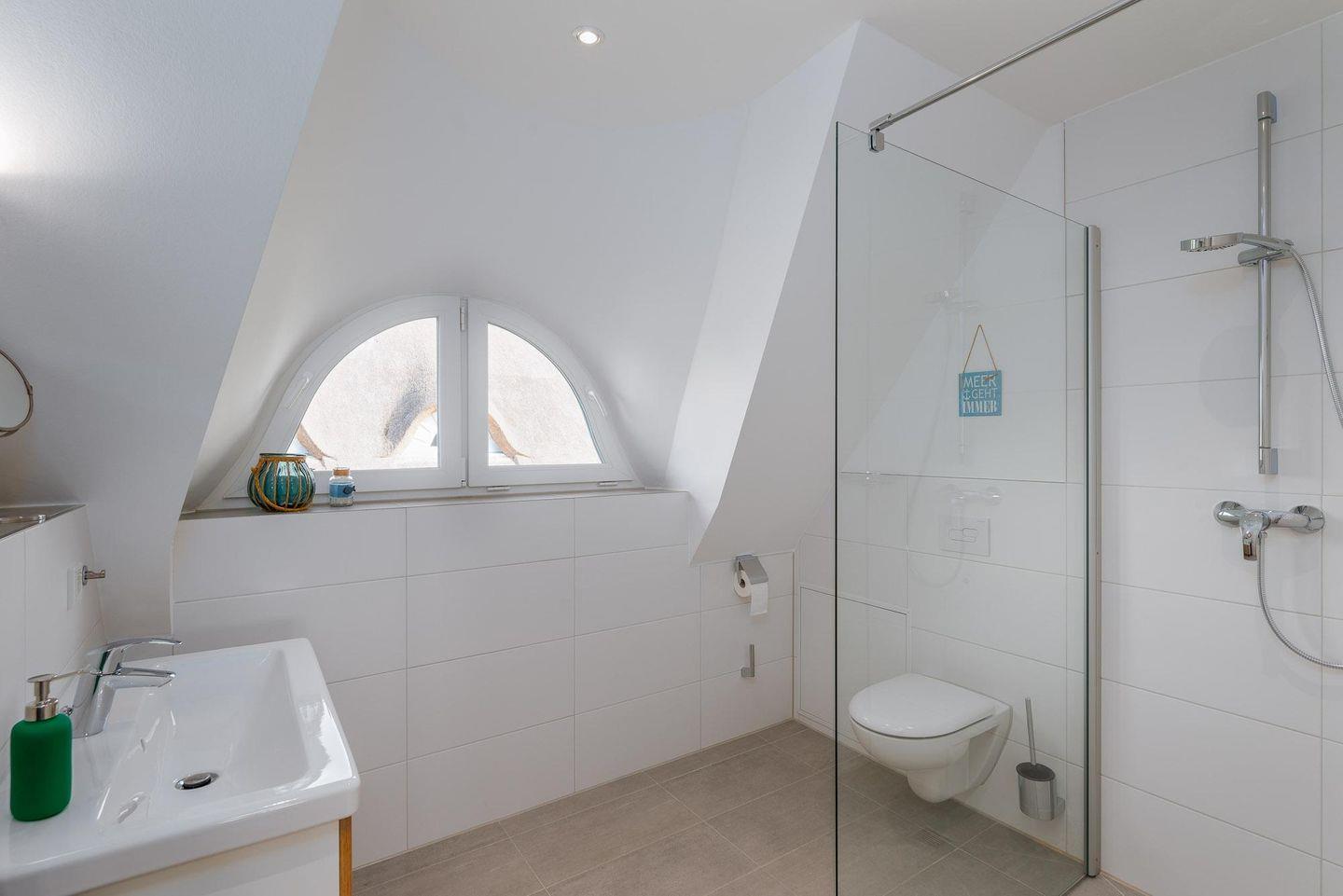 2 Duschbäder mit Badmöbeln, ebenerdiger Dusche, Handtuchtrockner, Schminkspiegel