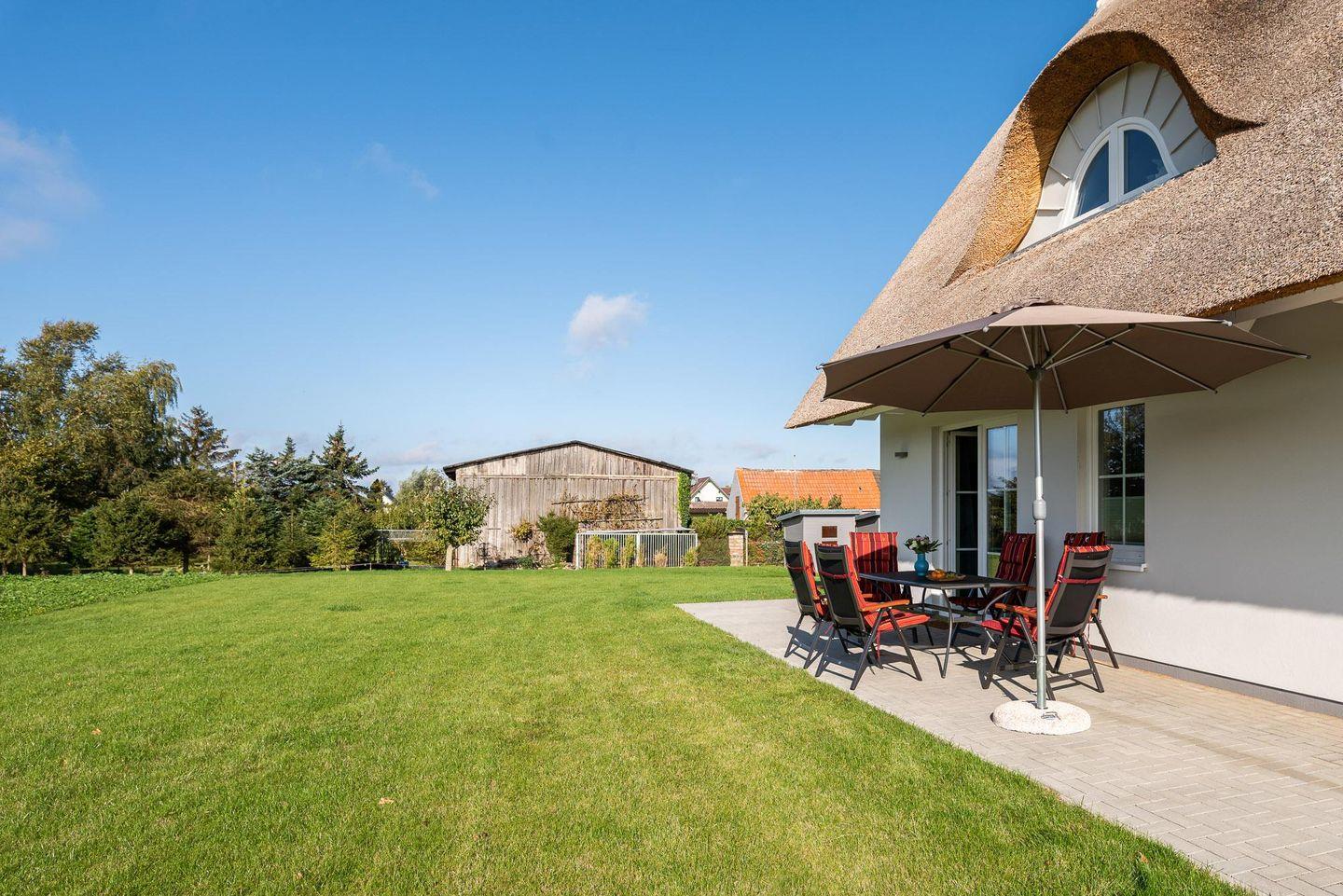 Unser mit Reet bedecktes Doppelhaus liegt ruhig gelegen am Ende einer Sackgasse