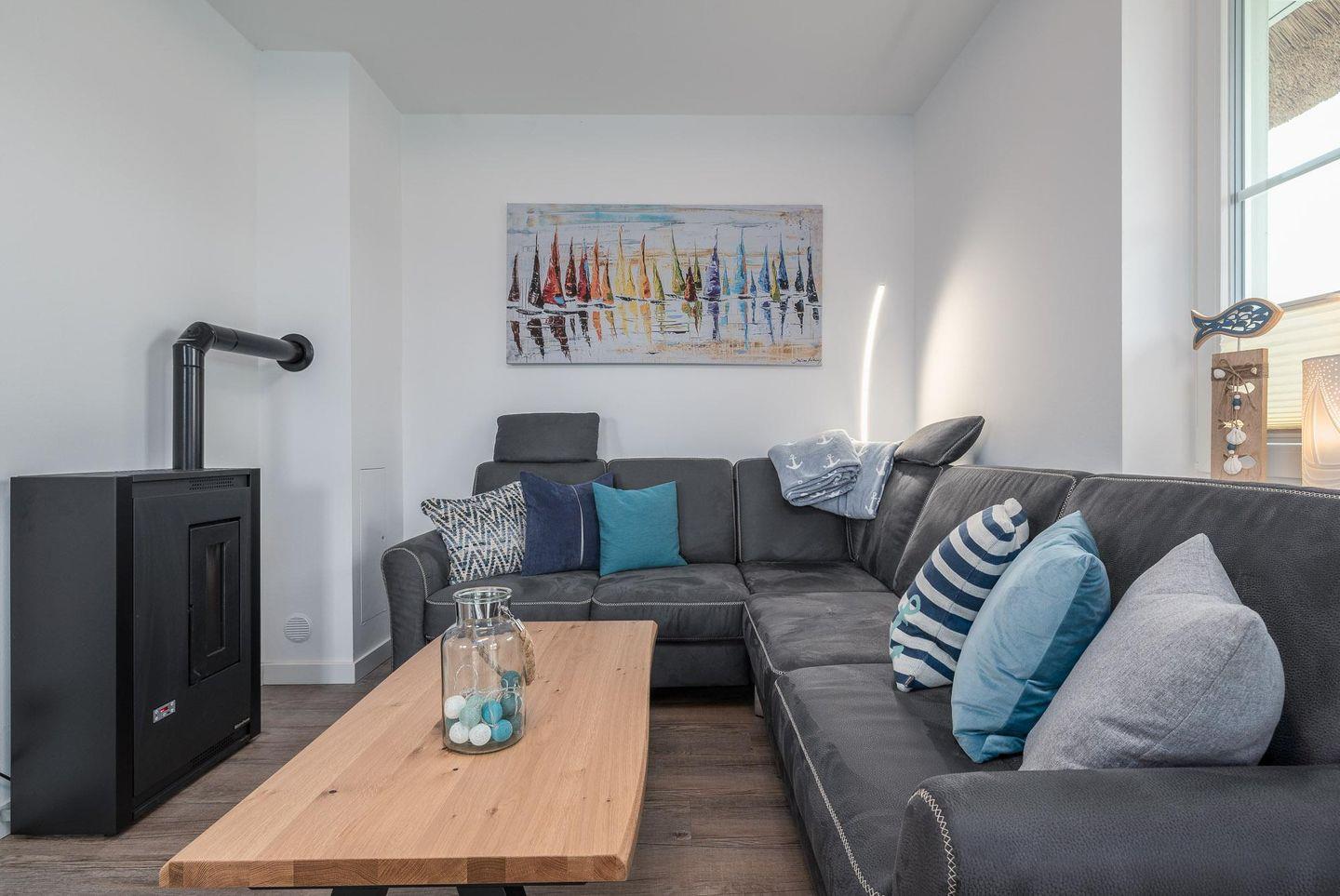 Reetdach Haus.[nbsp] Kaminofen mit Pellets, Flachbildschirm, gemütliches Ecksofa