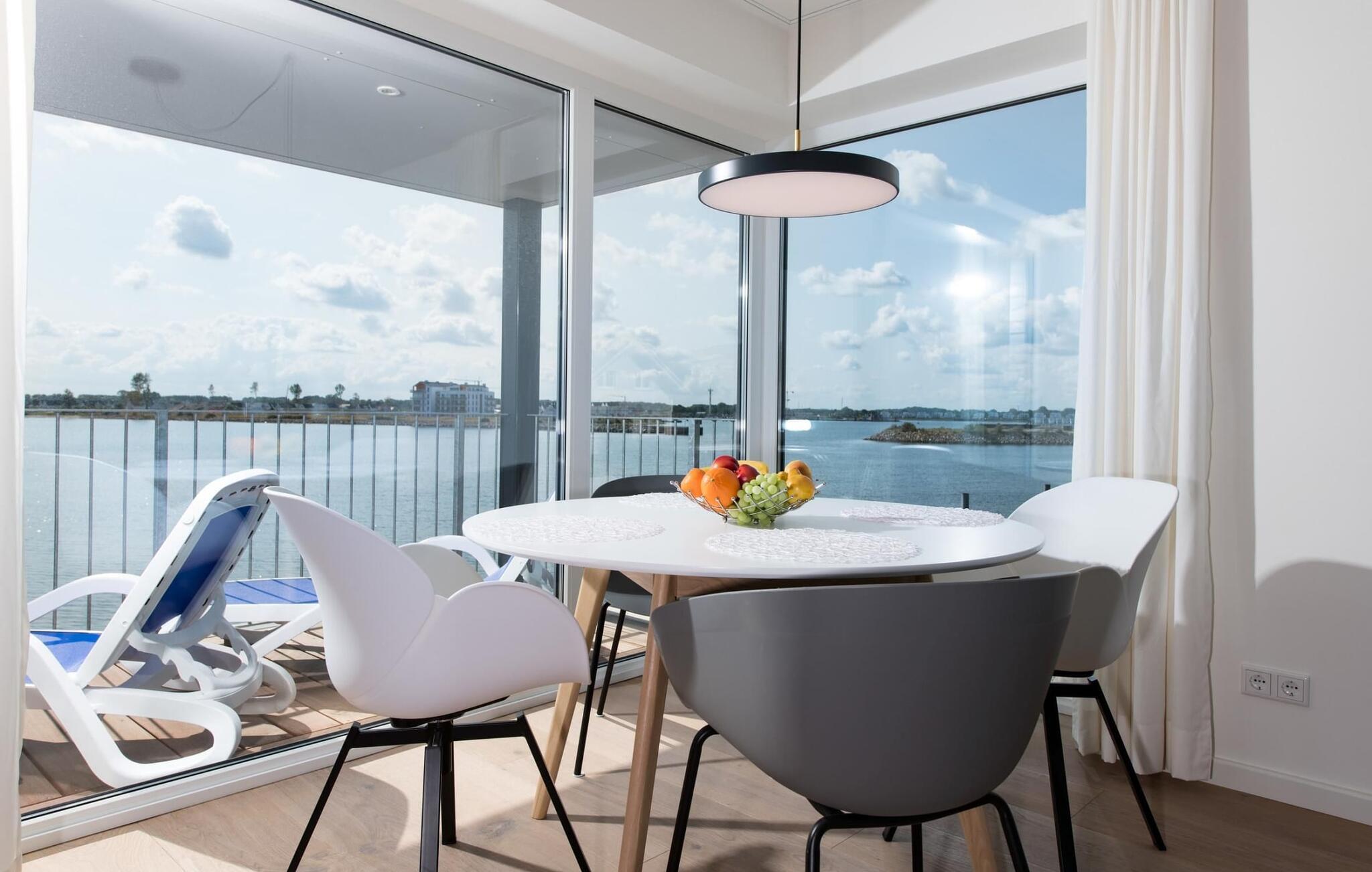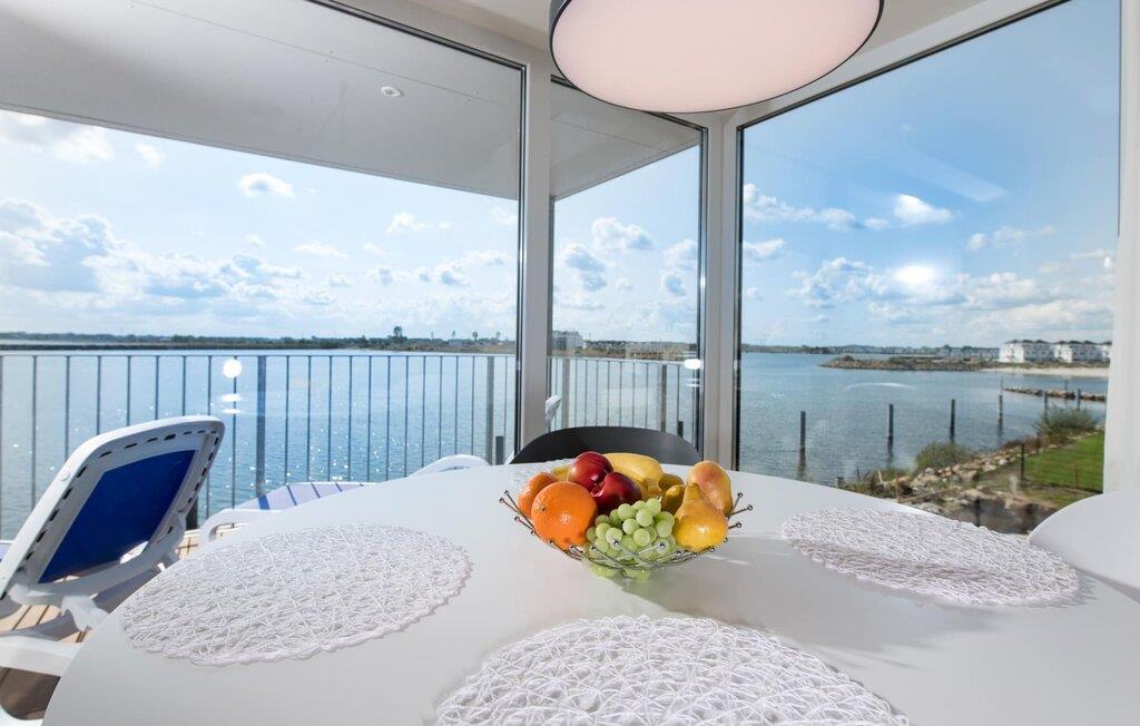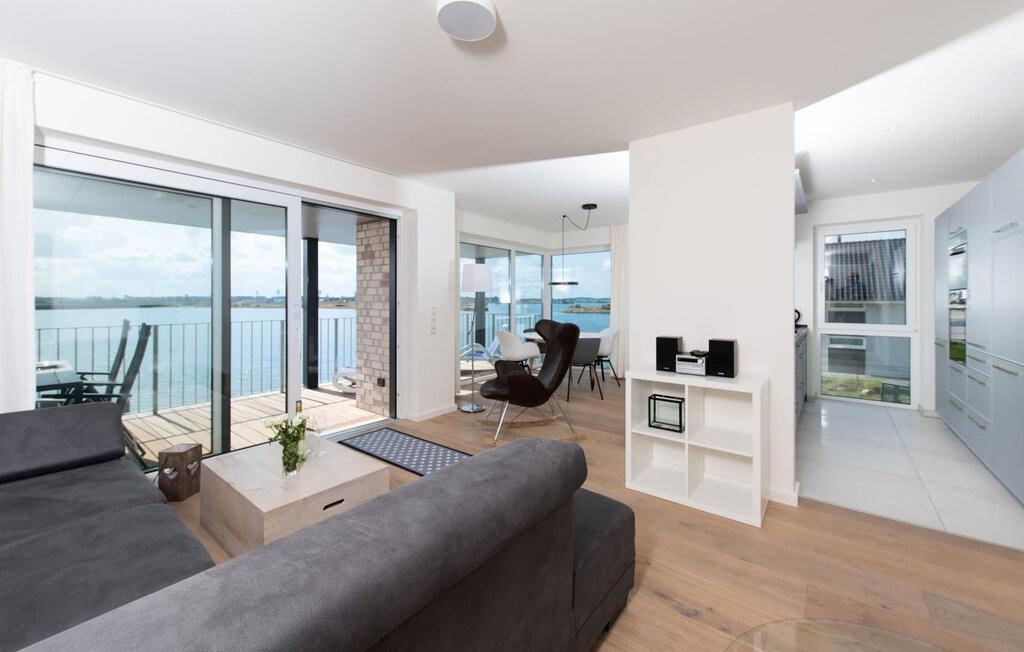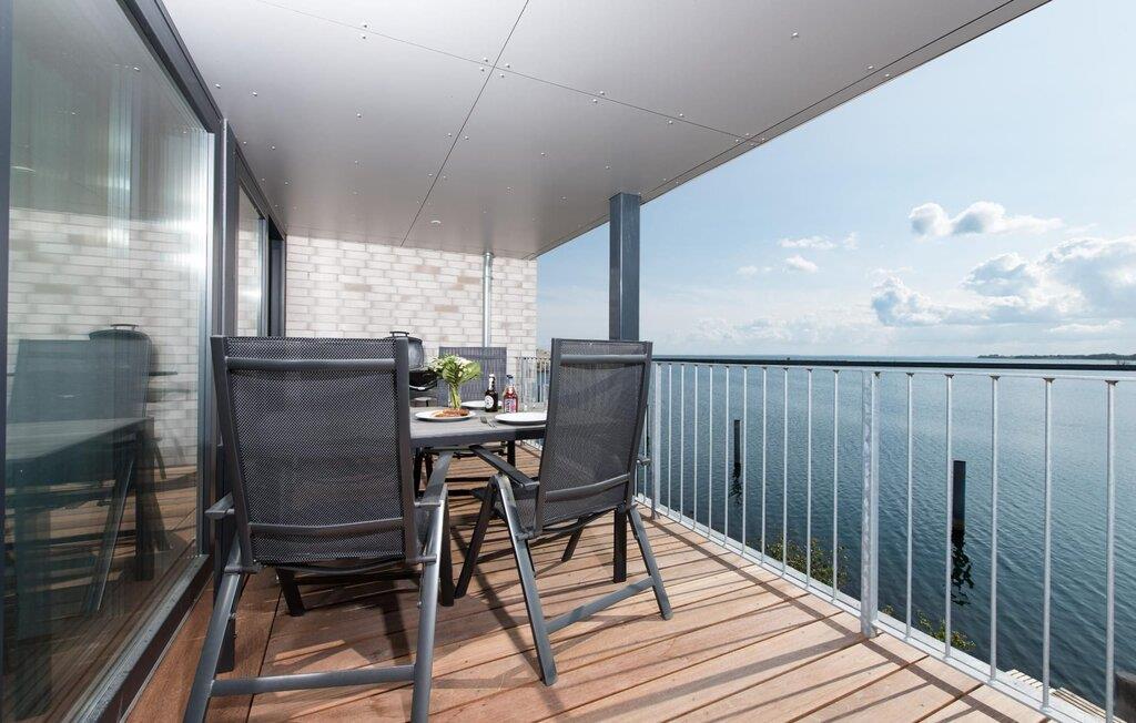 Midt i Østersøen, på et smalt næs mellem Østersøen på den ene side og sejl- og sportsbådshavnen i Baltic Sea Resort Olpenitz på den anden side, ligger denne ekstraordinære ferieejendom på første sal og kan bl.a. let tilgængelig med elevator. Placeret over alt, er der en spektakulær havudsigt gennem gulv til loft-vinduer. Havnebiograf garanteret. Og mens den sydvestvendte terrasse lover skønne solskinstimer, byder saunaen, pejsen og gulvvarmen på hyggelig hygge i hver sæson. Romantik er også garanteret, da Baltic Sea Resort lover betagende solnedgange. Opholds- og spisestuen i åbent plan med det komfortable siddeområde og det store spisebord inviterer jer til at blive hængende foran den knitrende pejs. Den panoramiske vandfront byder på ferieunderholdning i form af en havnebiograf med skibe, der sejler forbi. Det åbne køkken-alrum er fuldt udstyret og kan bruges til at tilberede lækre feriemåltider. Det fuldt udstyrede badeværelse med bruser i gulvniveau sikrer maritime wellness-øjeblikke, da I kan slappe dybt af i saunaen med udsigt over vandet. Et gæstetoilet giver ekstra komfort. En privat parkeringsplads foran huset og et sted at opbevare cykler i huset er til rådighed. Vores favoritsted: Nyd solen på terrassen og se havnebiografen med en drink i hånden. Bemærk venligst, at OstseeResort Olpenitz stadig er under opførelse på grund af stor efterspørgsel. Ikke desto mindre opfylder ejendommene allerede en 5-stjernet standard og tilbyder jer et førsteklasses ophold. Ethvert byggearbejde på resortet vil ikke påvirke jeres ferienydelse, hvorfor yderligere rabatter er udelukket.