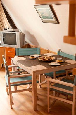 Im Inneren des Ferienhauses sorgt eine moderne Elektroheizung für wohlige Wärme, auch an kühleren Tagen. Die offene Kochnische ist praktisch eingerichtet und bietet einen 2-Platten-Herd, Kühlschrank, Toaster, Wasserkocher sowie sämtliche Küchenutensilien, Geschirr und Besteck. Im Essbereich steht Ihnen ein Esstisch zur Verfügung, sodass Sie Ihre Mahlzeiten entspannt im Haus genießen können. Ein Sofa und ein TV im Wohnzimmer liefern Komfort für gemütliche Stunden. Das Badezimmer ist mit Dusche, Waschbecken, WC und Spiegel ausgestattet; warmes Wasser gehört selbstverständlich zur Ausstattung.