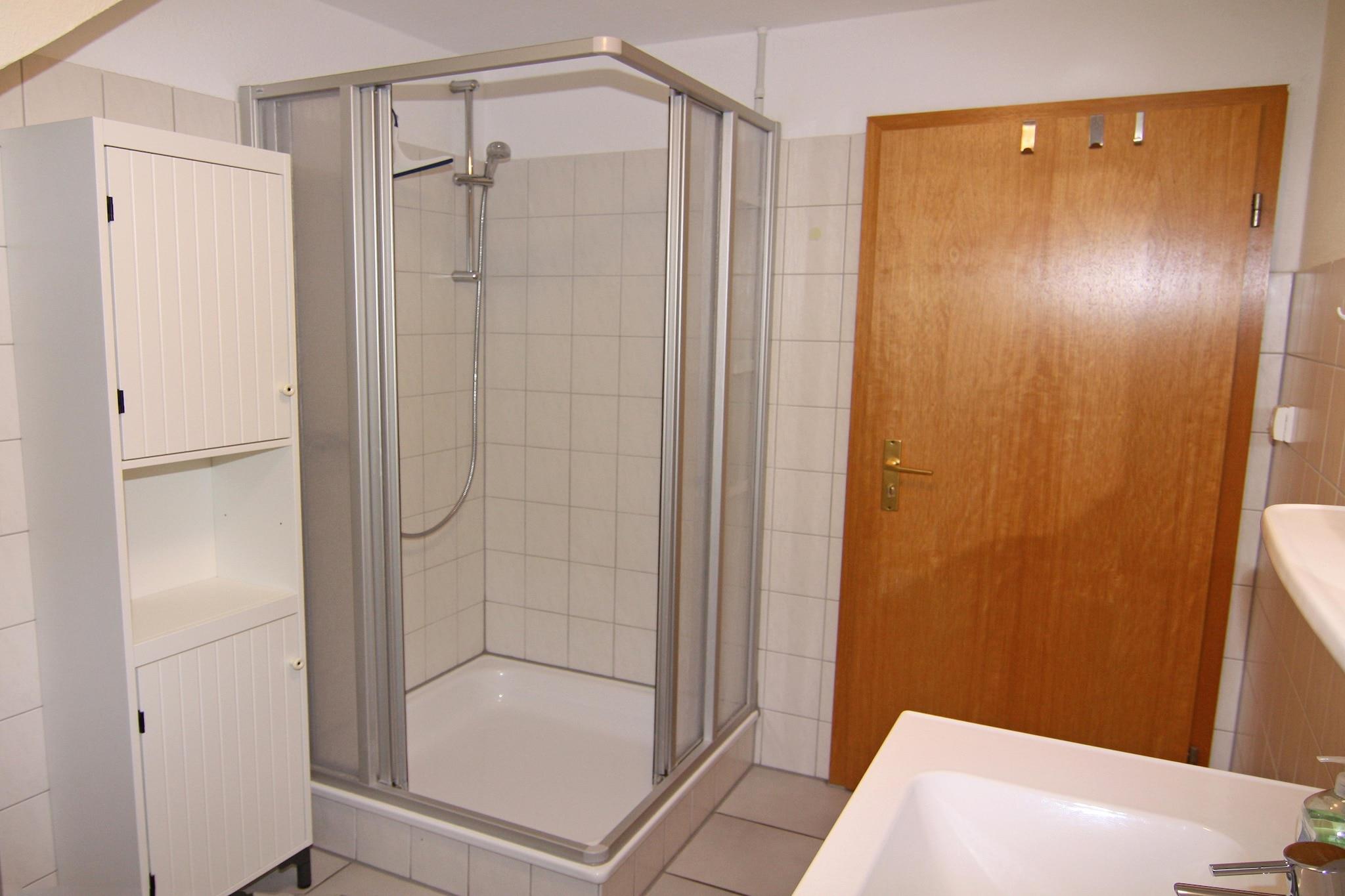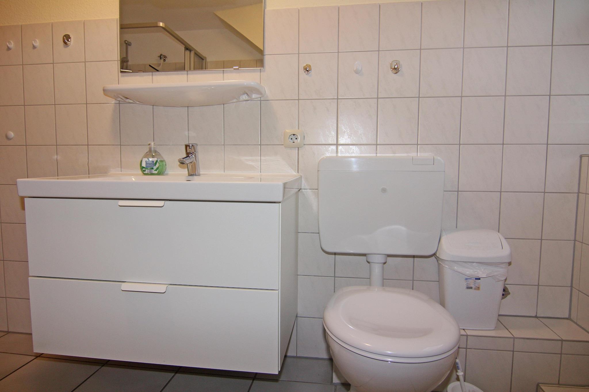 Hyggelig lejlighed med lyst fyrretræsmøbler på øverste etage over 2 etager, overvejende flisebelagt med el-gulvvarme. Stuen/spisestuen har cirka 30 m² satellit-tv, stereoanlæg med USB og I-Pod-forbindelse og separat spiseplads. Køkkenet er udstyret med indbygget køkken, spisebord til 6 personer, 4-plade komfur, ovn, køleskab med fryseboks, opvaskemaskine, kaffemaskine, elkedel og masser af køkkeninventar. Badeværelset med brusebad har også sin egen vaskemaskine. Smukt lejlighedskompleks med hyggelige lejligheder ikke langt fra strandene. Tilbring din ferie på den tredjestørste ø i Tyskland, mellem Kiel-bugterne og Mecklenburg i Østersøen. Den lille by Petersdorf, som en del af byen Femern, ligger i det vestlige Femern i landsbyen Wurth-Ruhm. De brostensbelagte gader, de små murstenshuse og de smalle gader giver stedet på den vestlige del af øen al sin charme. Femerns 20 strande er mere end 78 km lange - ideelle til at slappe af i en af de mest solrige regioner i Tyskland. Du kan nå øen fra fastlandet via Femern Øresundsbroen. Den varierede kystlinje byder virkelig på noget for enhver smag: klitter og søer i nord, stejle kyster og klippekyster i øst, sandstrande i syd og betagende solnedgange i vest. I baglandet finder du charmerende landskaber og naturreservater at udforske. Højdepunkter inkluderet: Alle forbrugsbaserede energiomkostninger. Parkeringsplads Aktiviteter i nærheden: Petersdorf og dens omgivelser tilbyder sine besøgende mange muligheder for at gøre deres ferie individuelt og varieret. Bådture, dybhavsfiskeri, surfing, sejlads, dykning og vandreture er blot nogle få af de muligheder, der giver dig mulighed for at skræddersy en ferie til din egen smag. Alle interesserede i Tysklands nabolande