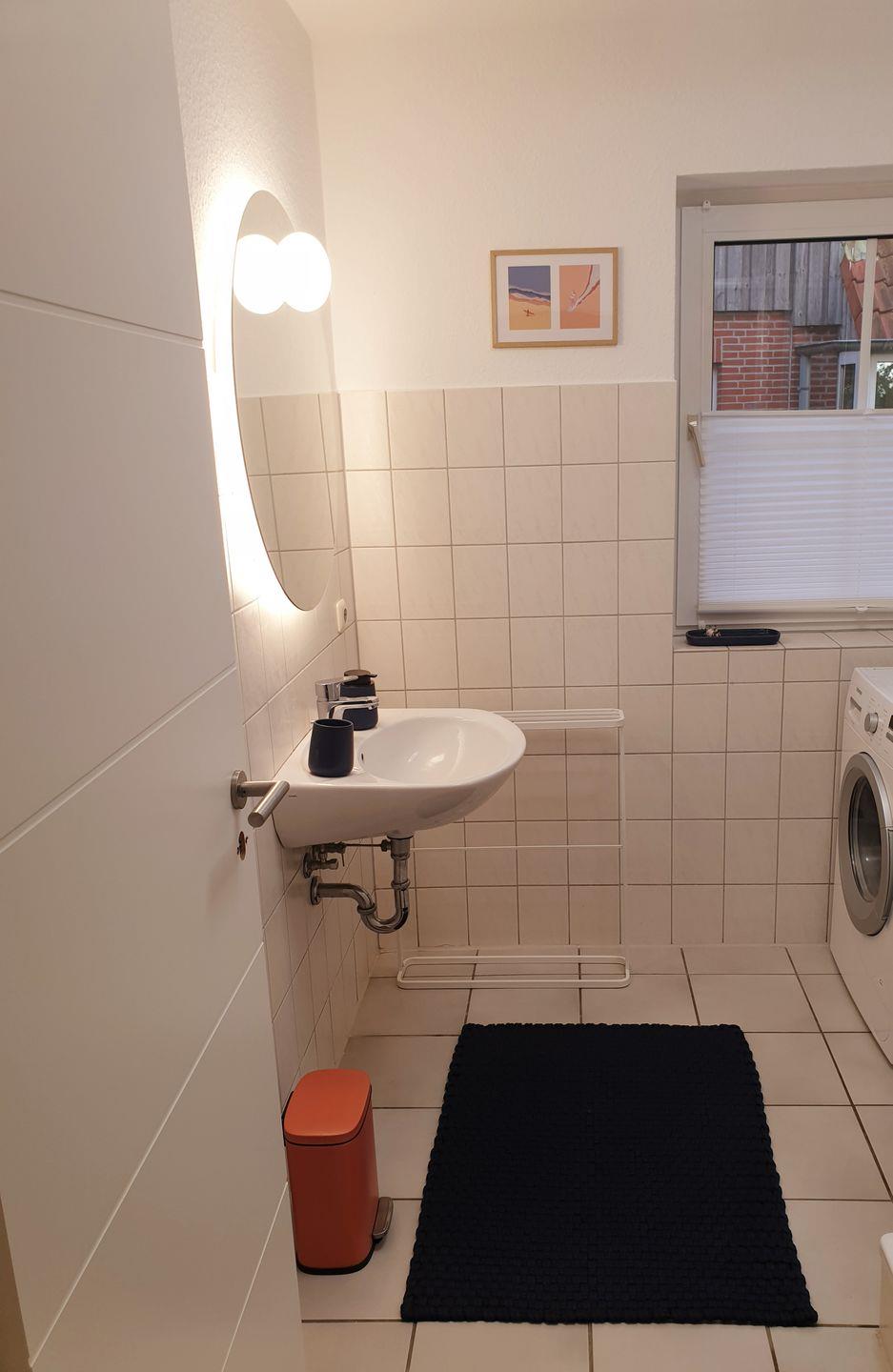 Die 56 m² große Ferienwohnung im Erdgeschoss bietet ein Schlafzimmer, ein modernes Bad und eine offene Küche zum Wohnbereich. Genießen Sie entspannte Stunden auf der überdachten Terrasse mit Gartenblick. Die Unterkunft verfügt über WLAN, Waschmaschine, Privatparkplatz, Fußbodenheizung und kinderfreundliche Ausstattung. Der Strand ist 4 km entfernt, Einkaufsmöglichkeiten erreichen Sie in 500 m.