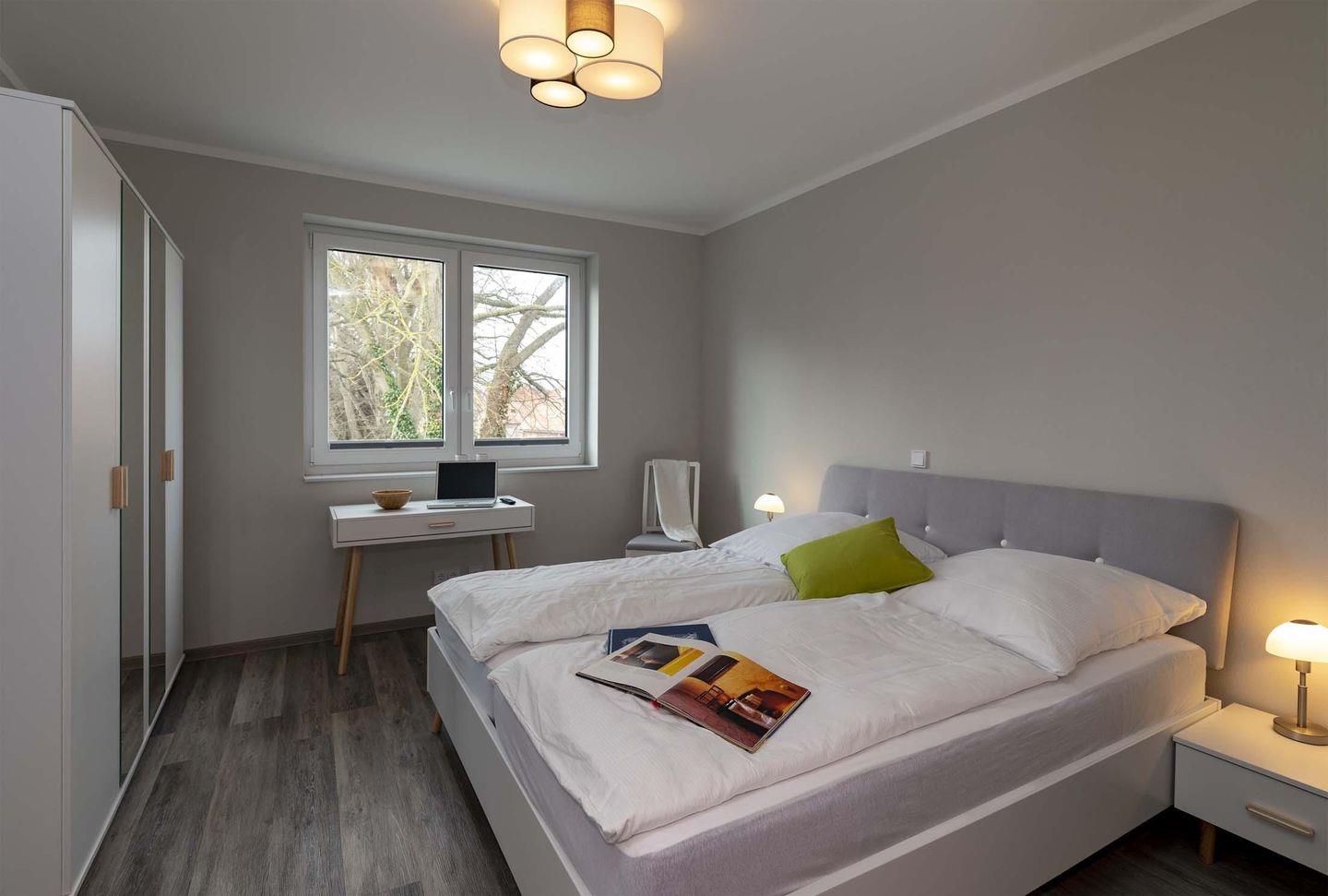 Alle 4 Betten sind mit hochwertigen Matratzen ausgestattet, welche eine weiche und eine härtere Seite haben. Das Hauptschlafzimmer verfügt über ein Doppelbett, einen Frisiertisch und einen 32" Smart TV. Im zweiten Schlafzimmer befindet sich ebenfalls ein 32"Smart TV, 2 Einzelbetten sowie ein Schreibtisch.