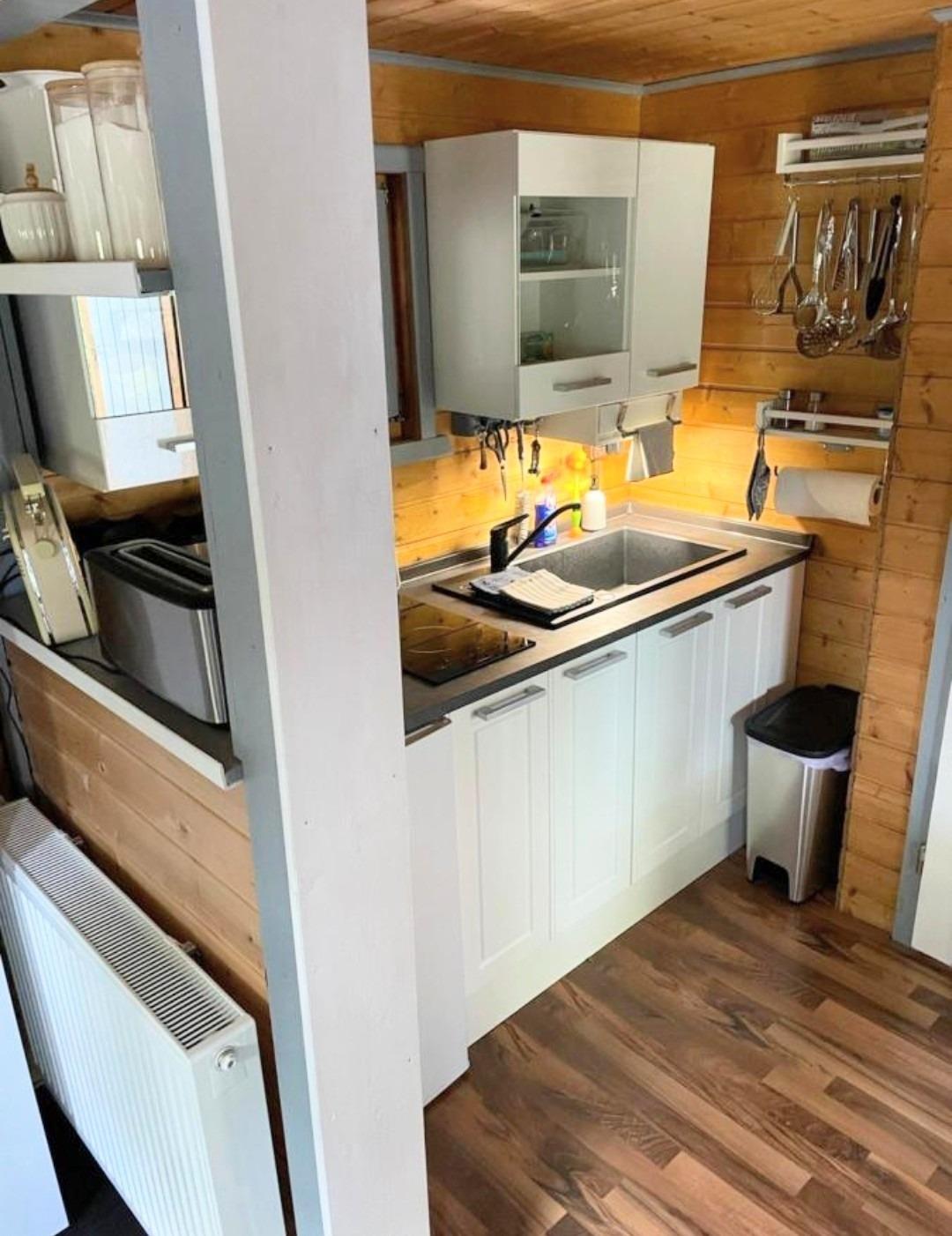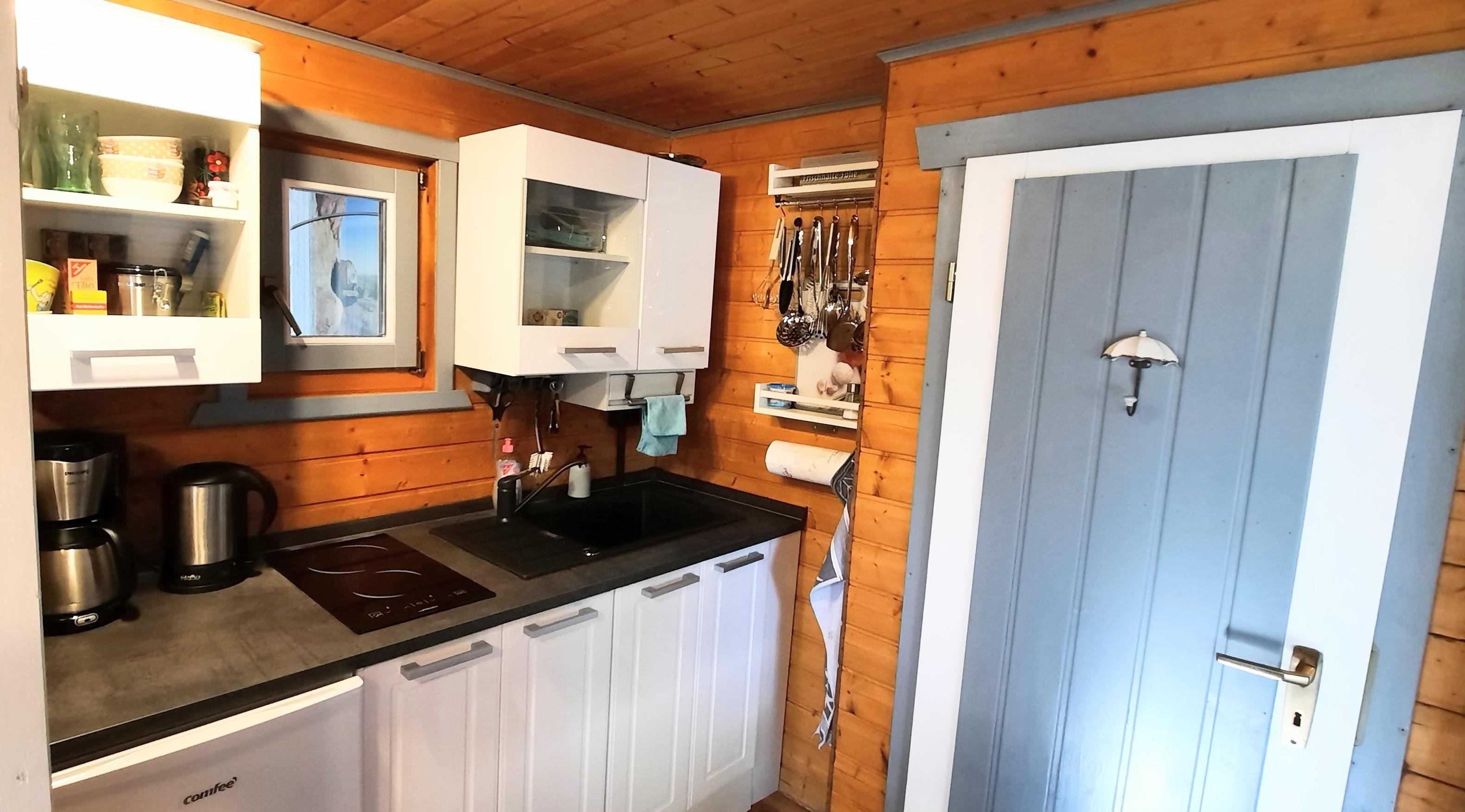 Zum Frühstücken und Kochen, steht alles in unserer großzügigen Kochnische, mit Mikrowelle bereit.