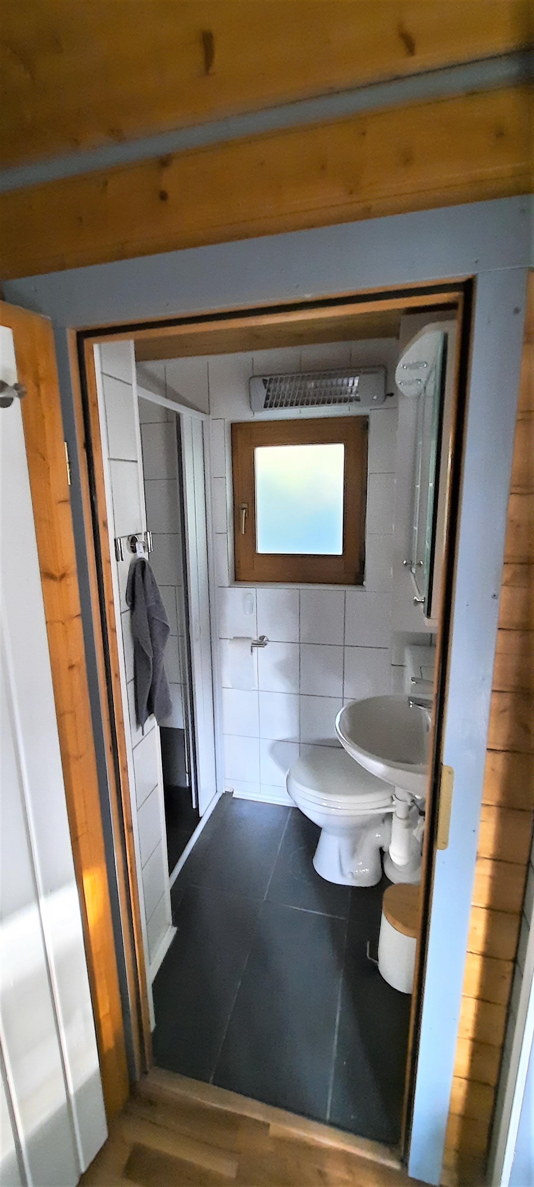 Das Bad ist klein, aber fein, verfügt über genügend Stauraum für Bad/Pflegeutensilien und Handtücher (Fön vorhanden).