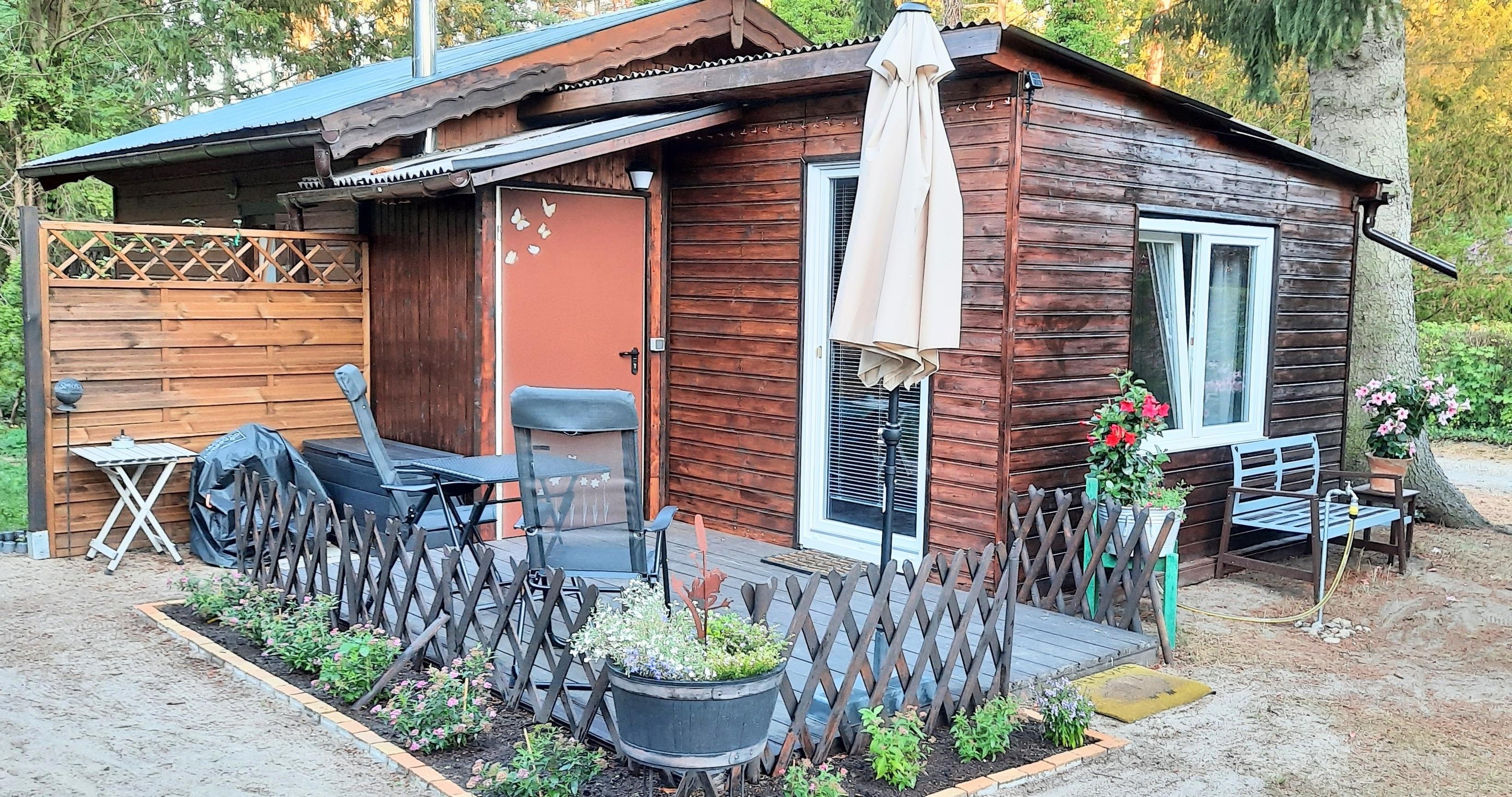 Unser Bungalow befindet sich auf unserem großen Grundstück, in schöner, ruhiger Lage, in Petershagen, in direkter Waldnähe.