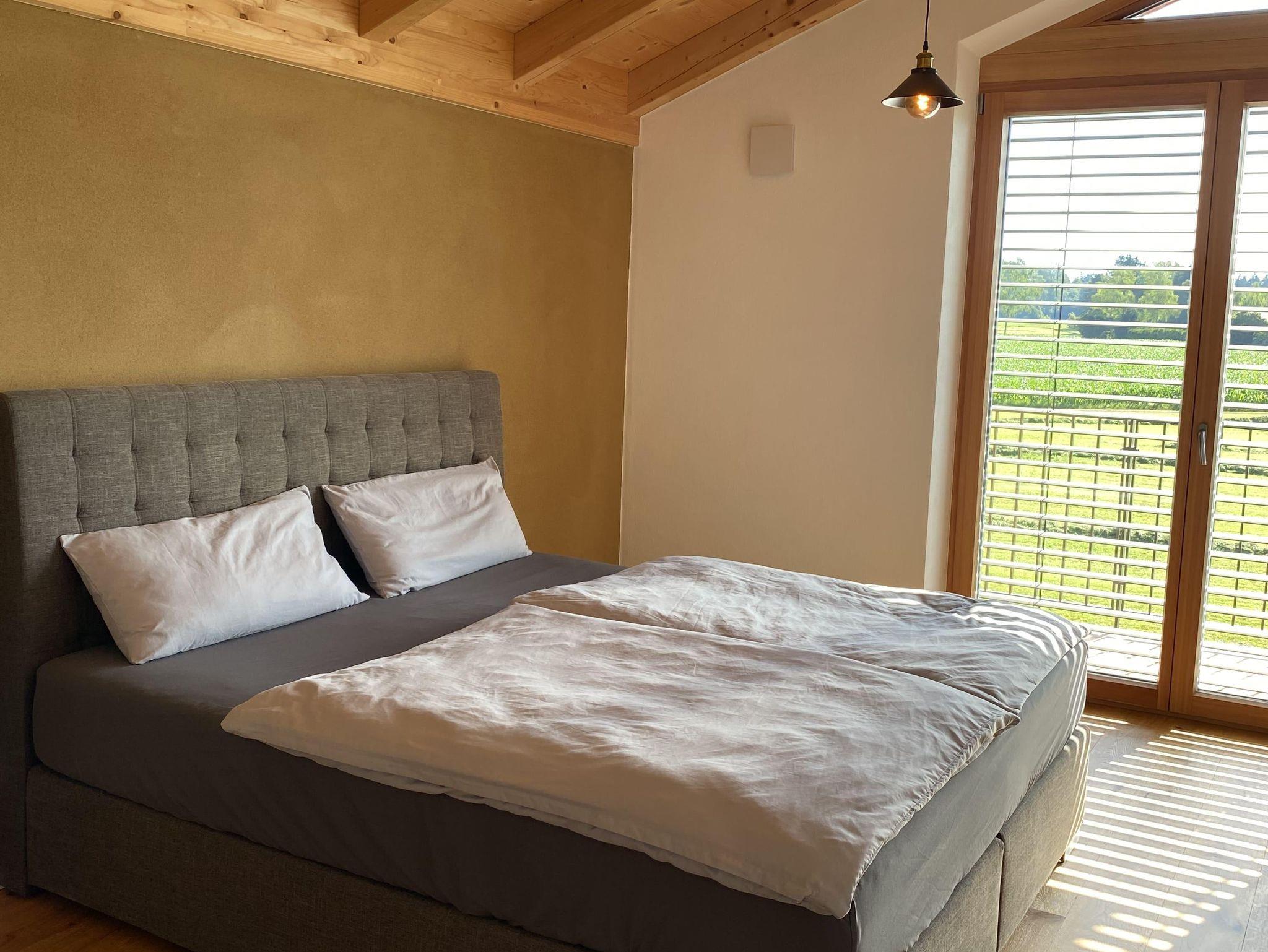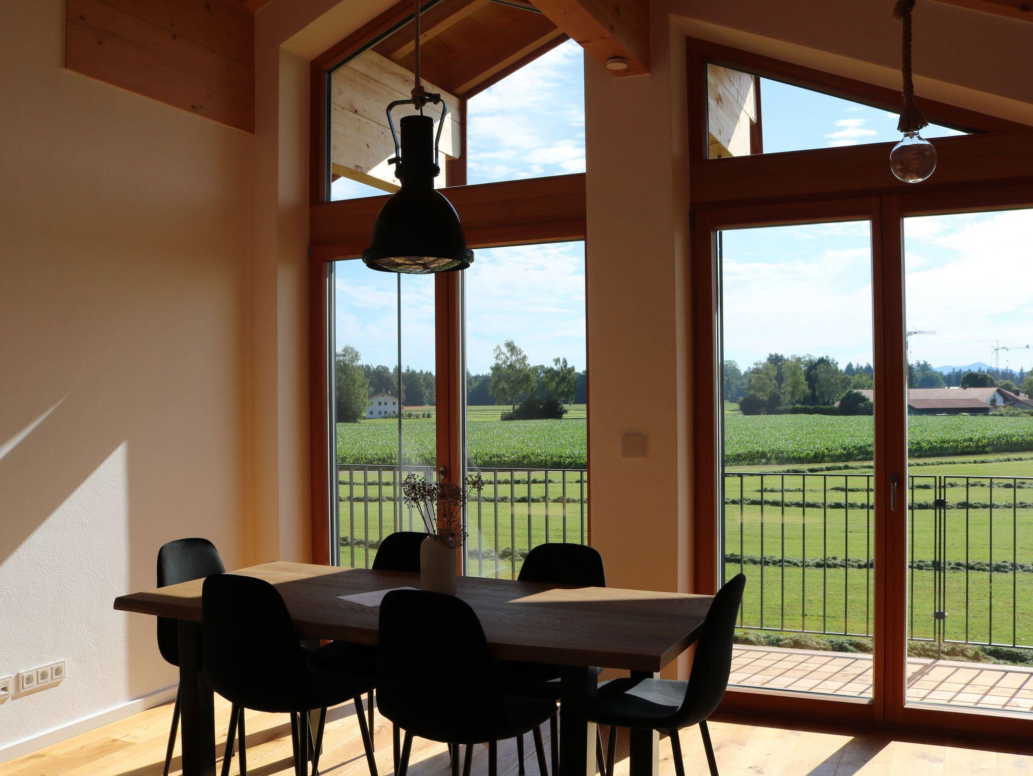 Die geräumige Wohnung wurde im Frühjahr 2024 fertiggestellt. Im Mittelpunkt beim Bau stand immer das gute Raumklima, sowie das Verwenden von nachhaltigen und gesunden Materialien. So bestehen unsere aus massiven Holzbau mit atmungsaktiven Lehmputz und frischer Kalkfarbe.