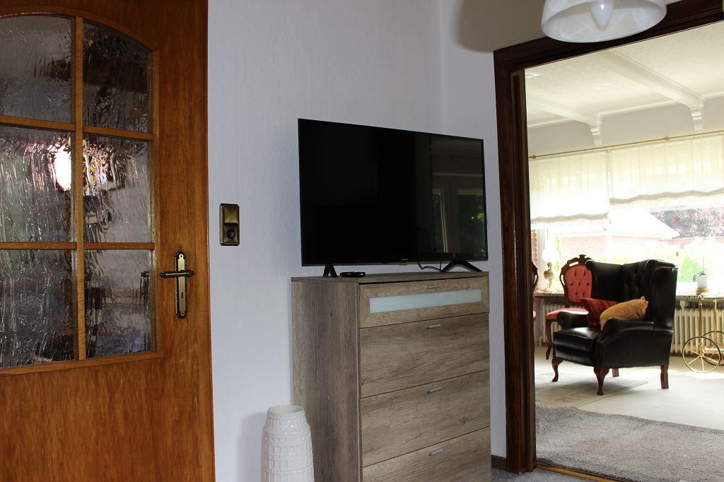 Das Ferienhaus Leevke bietet Platz für bis zu 6 Personen. Im Erdgeschoss befindet sich der Eingangsbereich mit Garderobe. Vom Flur aus gelangen Sie in das TV Zimmer mit gemütlicher Couch. Vom hier aus geht es in das große Wohnzimmer mit rustikalem Ambiente und Teppichboden. Auf den roten im altostfriesischen Stil gemachten Stühlen kann man sehr gut entspannen und gemütlich Ostfriesentee trinken. Der vorhandene Kamin darf aus brandschutztechnischen Gründen nicht benutzt werden! Des Weiteren befindet sich im Erdgeschoss die im ostfriesischem Stil gehaltene Echtholzküche mit Tresen und Sitzplätzen. Die Küche ist komplett eingerichtet. Geschirr und Gläser sind reichlich vorhanden und sind zum Teil Sammelstücke. Angrenzend zur Küche ist das Esszimmer im Wintergarten. Die Sicht in den Garten ist wunderschön. Durch eine Tür gelangen Sie in den großen uneinsehbaren Garten. Dieser bietet einen Aussenkamin, eine überdachte Terrasse mit einer Sitzgarnitur für 6 Personen und einen Steingrill. Zudem ist der Garten ein Spielparadies für Kinder. Das Haus hat im EG ein geräumiges modernes Bad mit Duschpaneel mit Seitendrucksprüher und ein separates WC. Im Obergeschoss haben Sie drei Schlafräume, eines mit Doppelbett 200 x 200cm und zwei weitere mit jeweils 2 Einzelbetten 90 x 200cm. Ein Bad mit Dusche und WC finden Sie ebenfalls auf dieser Etage. WLAN ist verfügbar!