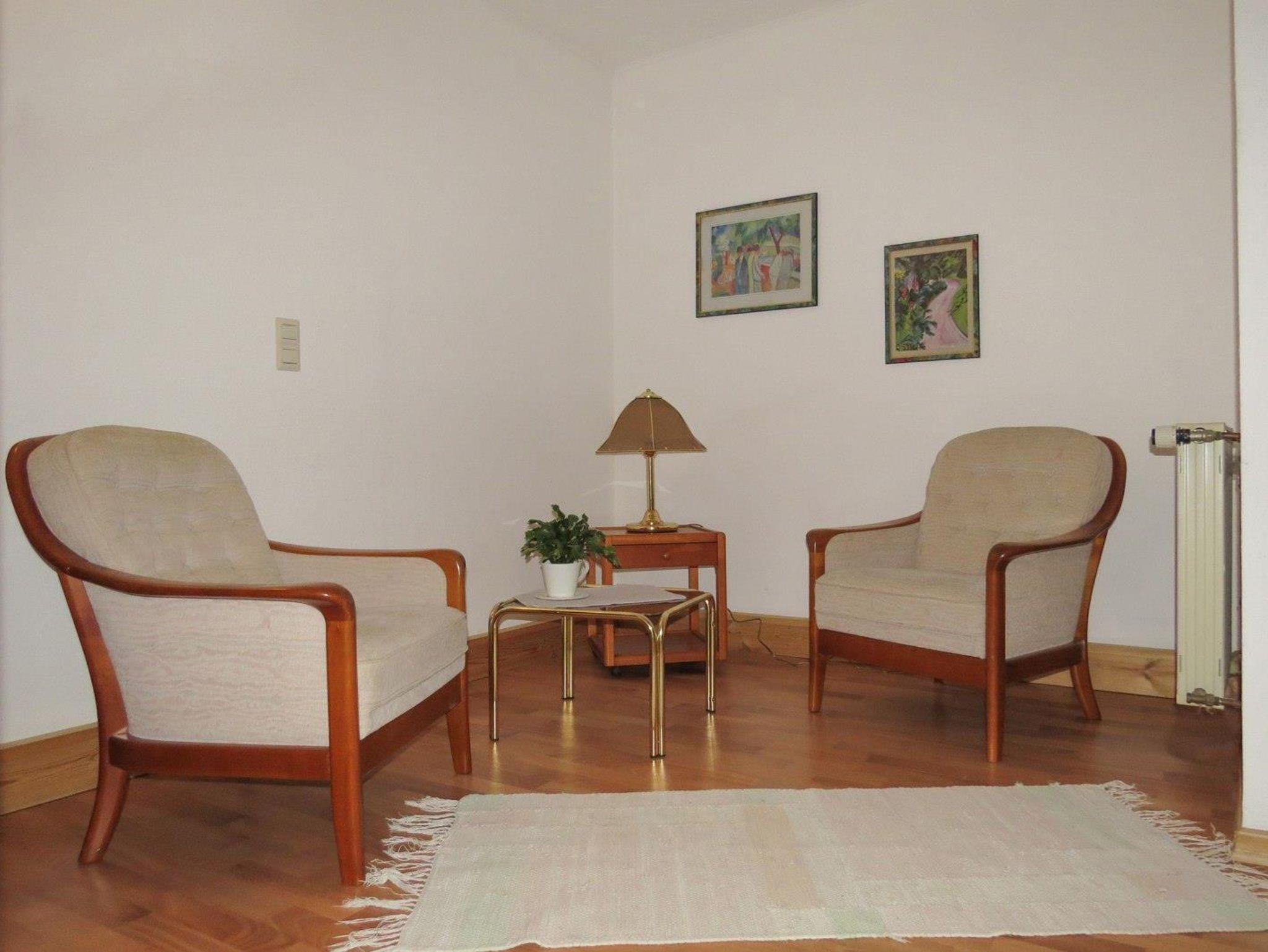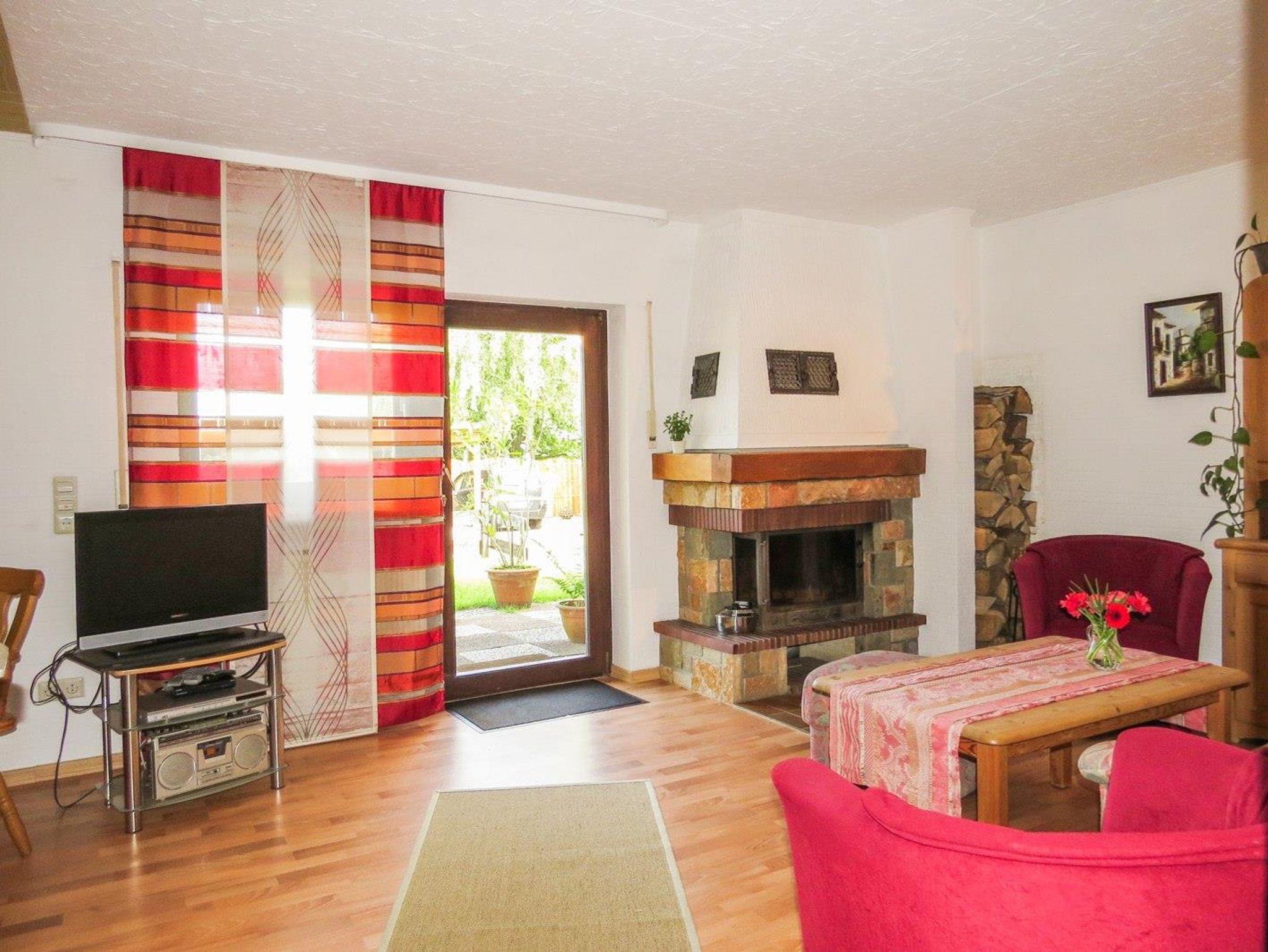 Geschmackvoll möbilierte Ferienwohnung (stufenlos und ebenerdig) mit Wohnraum mit Küche und Eßecke, 1 Doppelschlafzimmer, Bad/WC, SAT-TV, Kamin, Terasse und Wiese mit Grillmöglichkeit - Außenkamin. Kleine Hunde nach Rücksprache erlaubt.