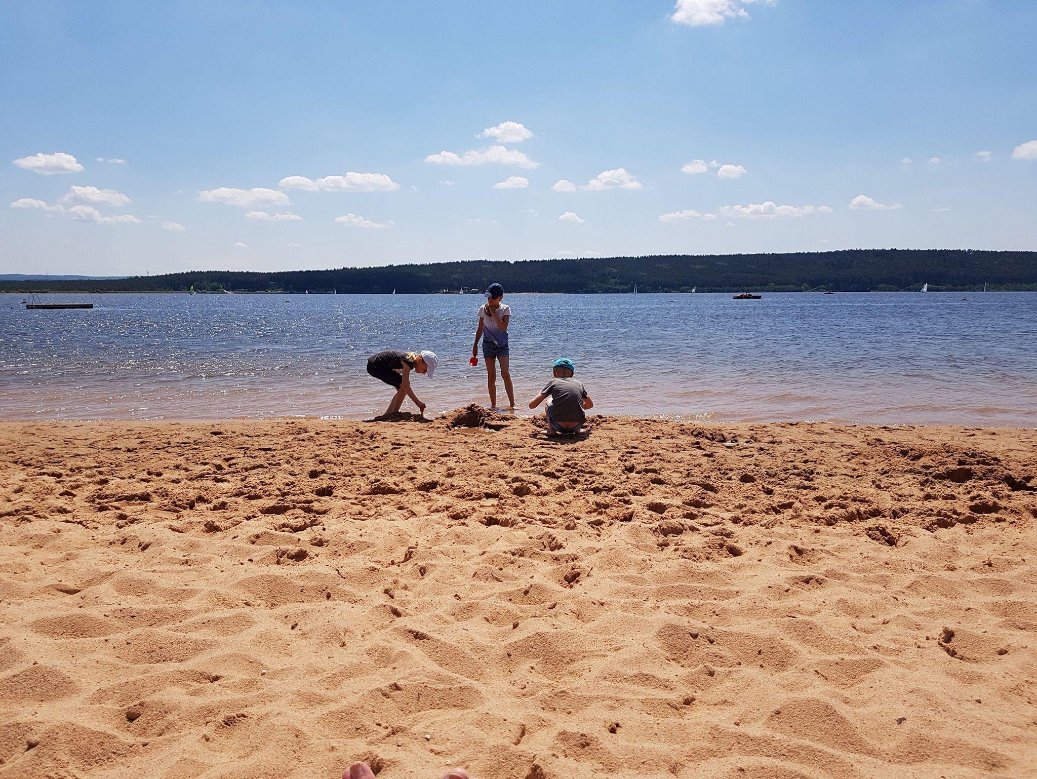 An flachen Ufern finden Familien mit Kindern schöne Badebuchten mit Sandstrand.