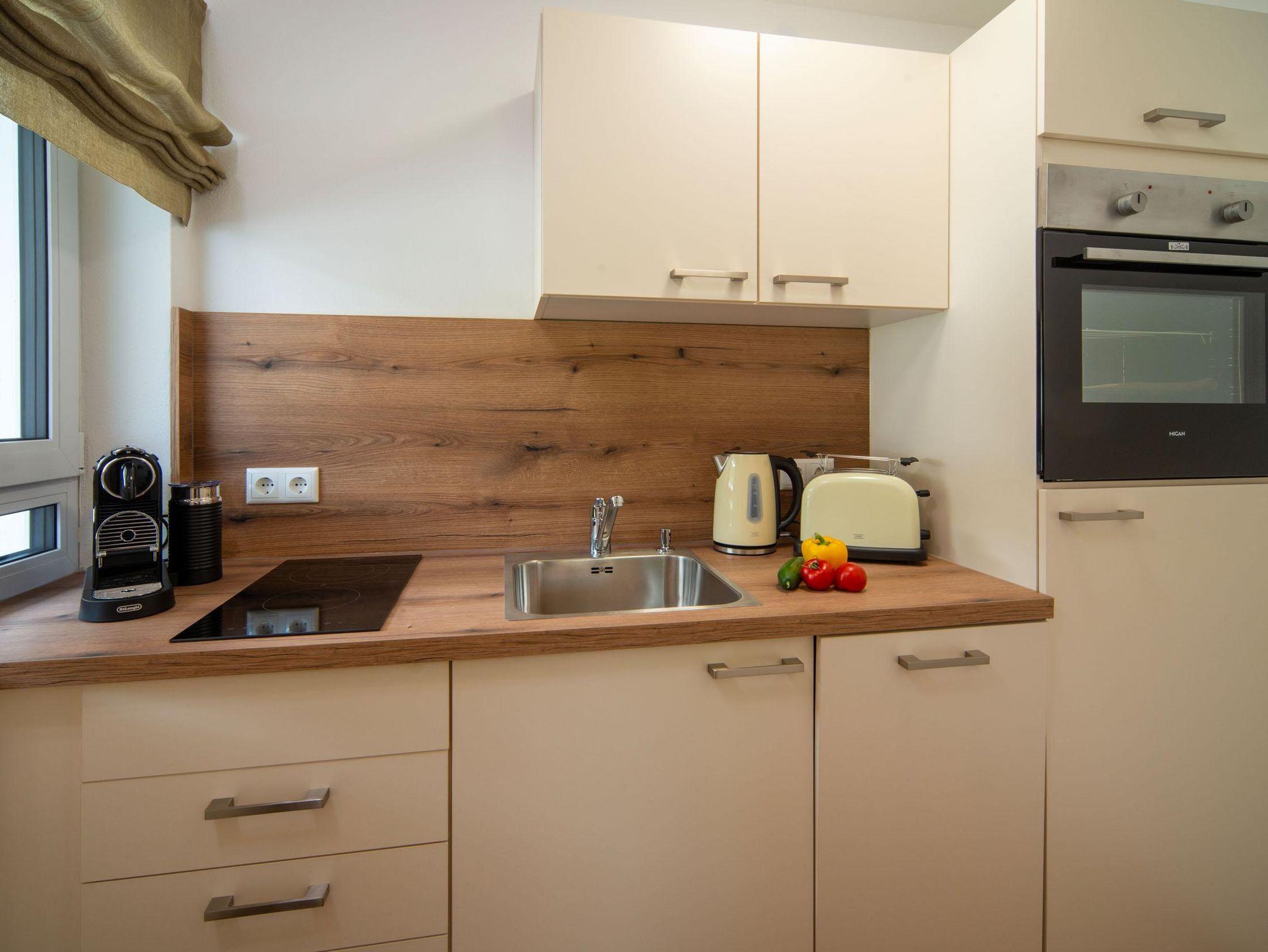 • große, separate Küche mit Essplatz, mit Nespresso Maschine, Milchaufschäumer, Toaster, Cerankochfeld, Backofen, Kühlschrank, Spülmaschine, Wasserkocher, Staubsauger