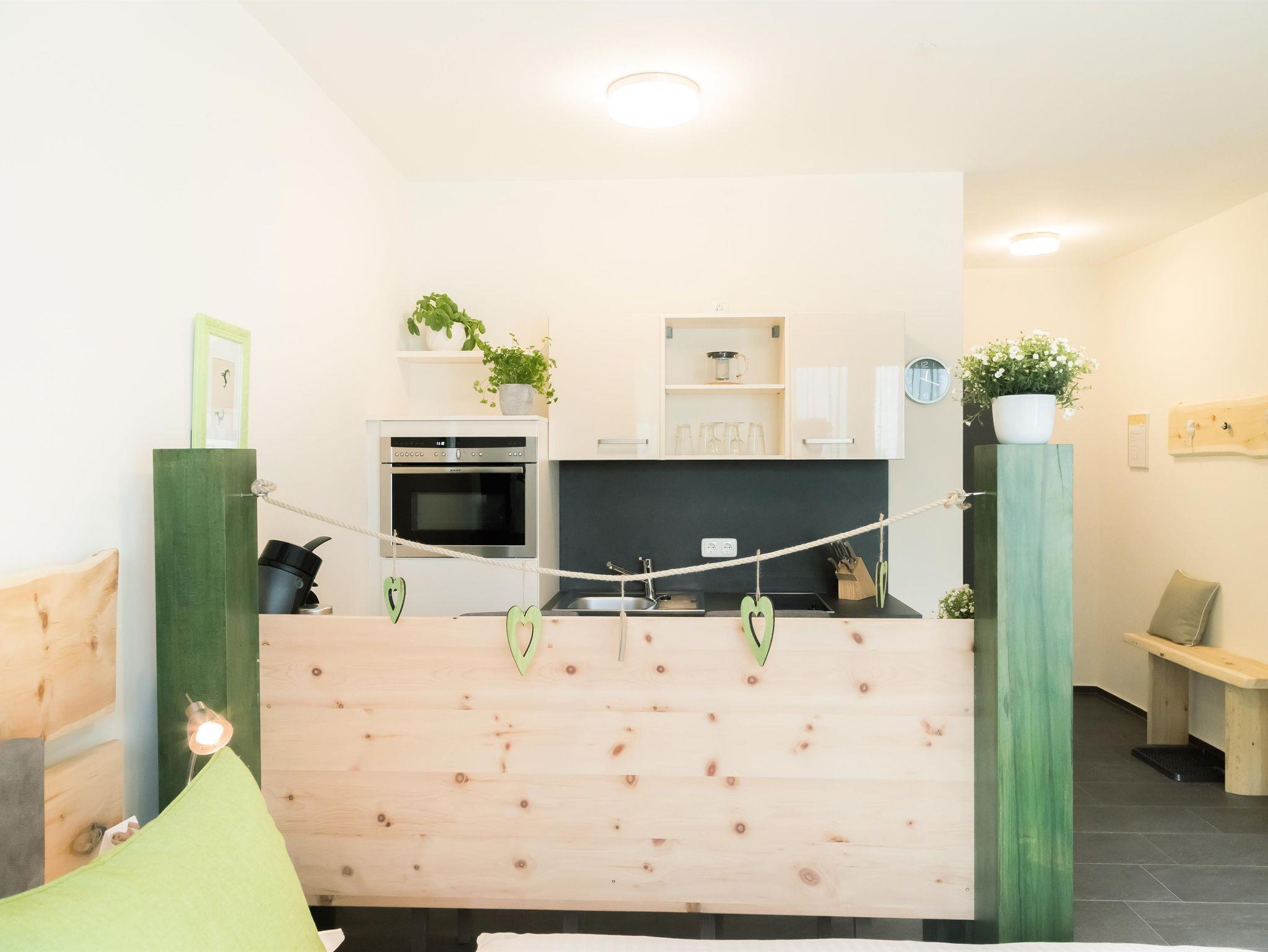 Wildgrüne Zirbenholzelemente, das hochwertige Box-Spring-Bett, die moderne Küche und natürlich alpenländische Dekoration sorgen für ein tolles Wohnklima.