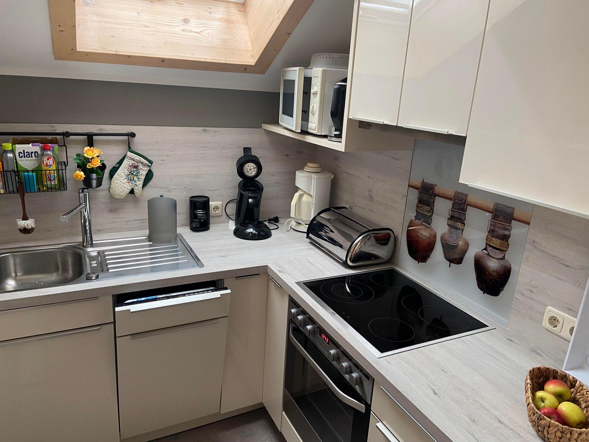 Die Wohnung verfügt über eine moderne Einbauküche und ein modernes Bad mit bodengleicher Dusche. Im Wohnzimmer finden bis zu vier Personen Platz am gemütlichen Esstisch und nach langer Wanderung oder einem erlebnisreichen Wintertag ruhen Sie sicher gerne auf dem gemütlichen Ecksofa aus oder lassen sich im Massagesessel verwöhnen.