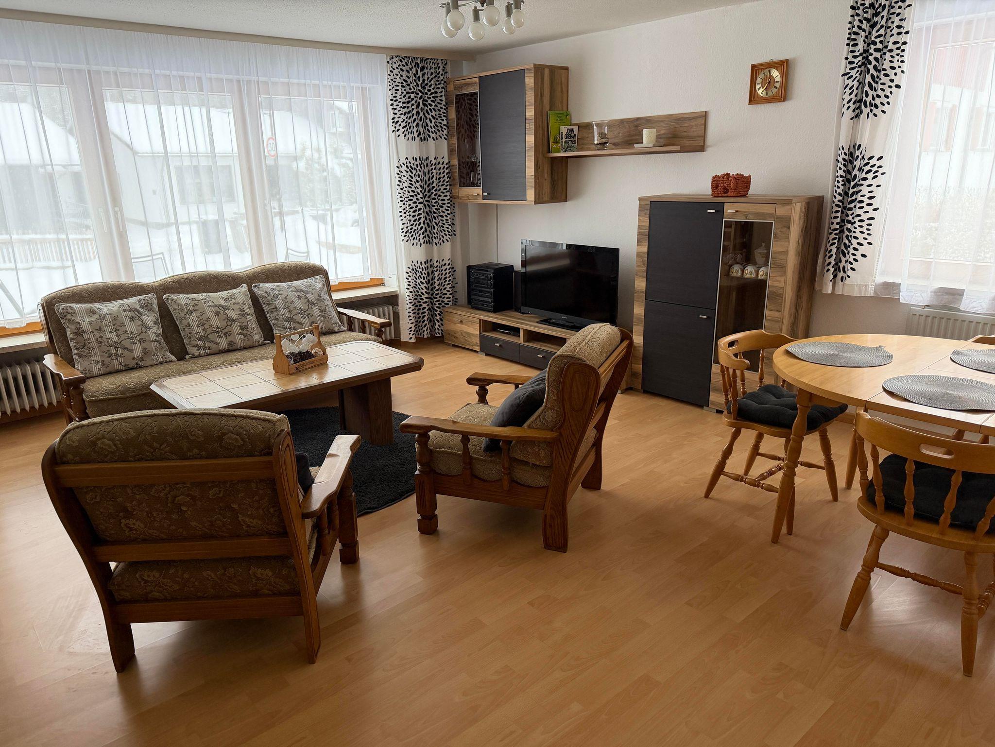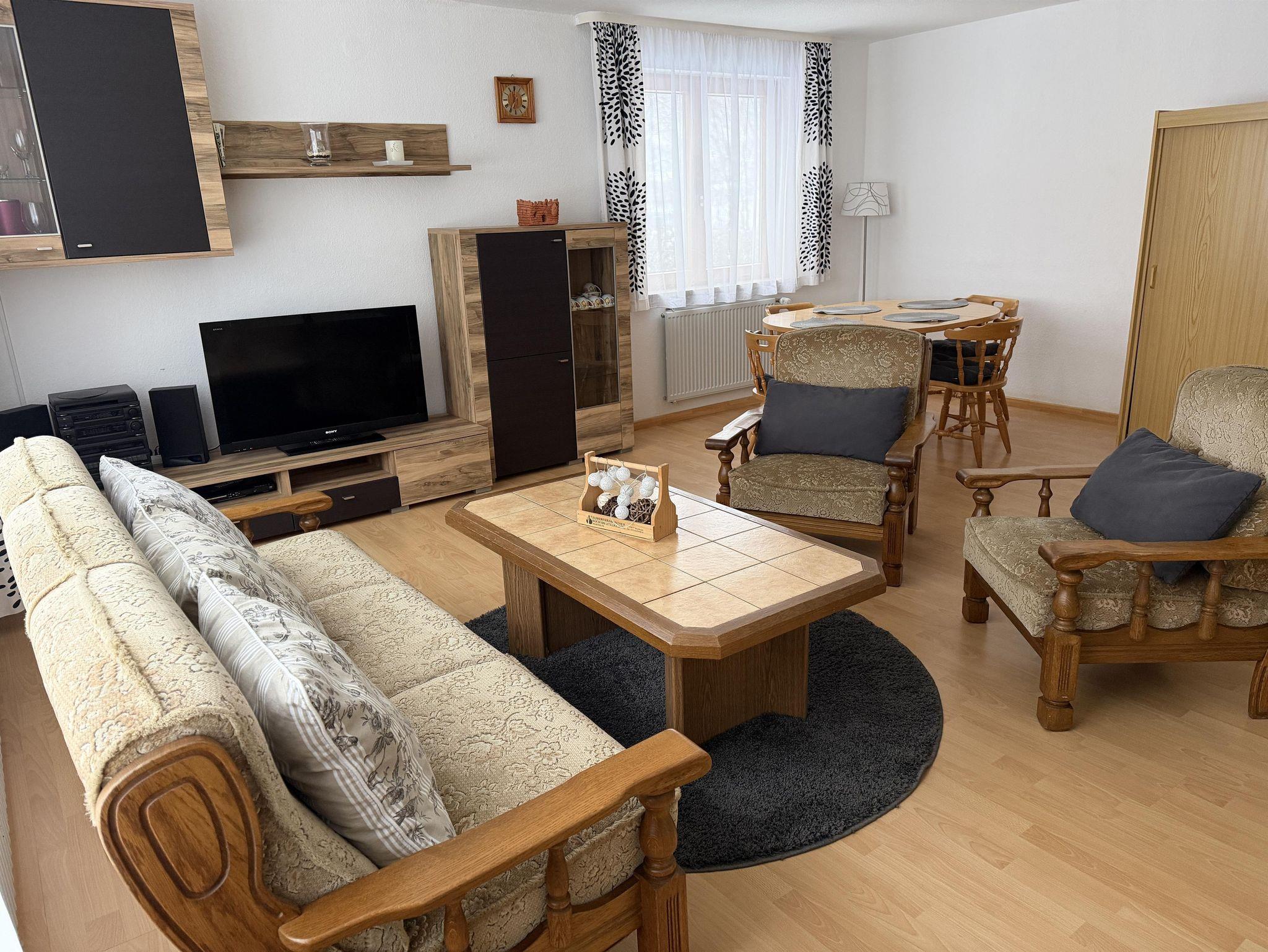 Die liebevoll eingerichtete Ferienwohnung im Erdgeschoss bietet auf 60 Quadratmetern komfortablen Raum für 1 bis 4 Personen und besticht durch ihre helle, einladende Atmosphäre. Zwei separate Schlafzimmer sorgen für erholsame Nächte: Ein Zimmer ist mit einem gemütlichen Doppelbett ausgestattet, das andere verfügt über zwei Einzelbetten – beide mit offenem Fußende und praktischen Steckdosen in Bettnähe. Der Wohnbereich kombiniert Wohn- und Esszimmer zu einem offenen, freundlichen Raum, in dem man entspannen, gemeinsam essen oder den Abend vor dem Fernseher ausklingen lassen kann. Die voll ausgestattete Küche lässt keine Wünsche offen: Cerankochfeld, Backofen, Geschirrspülmaschine, Kühlschrank, Kaffee-Maschine, Wasserkocher und ein Esstisch bieten beste Voraussetzungen für gemeinsame Mahlzeiten. Die Wohnung verfügt über ein Badezimmer mit Dusche und WC sowie ein separates WC. Für längere Aufenthalte stehen zudem eine Waschmaschine sowie Bügeleisen zur Verfügung. Bettwäsche, Handtücher, Haarföhn sowie WLAN sind selbstverständlich vorhanden. Die Wohnung ist ein Nichtraucherobjekt, und Haustiere sind nicht erlaubt – ideal für Allergiker oder Gäste, die besonderen Wert auf Sauberkeit und ein gepflegtes Umfeld legen. Besonders angenehm ist der direkte Zugang zur eigenen Terrasse sowie zum Garten.