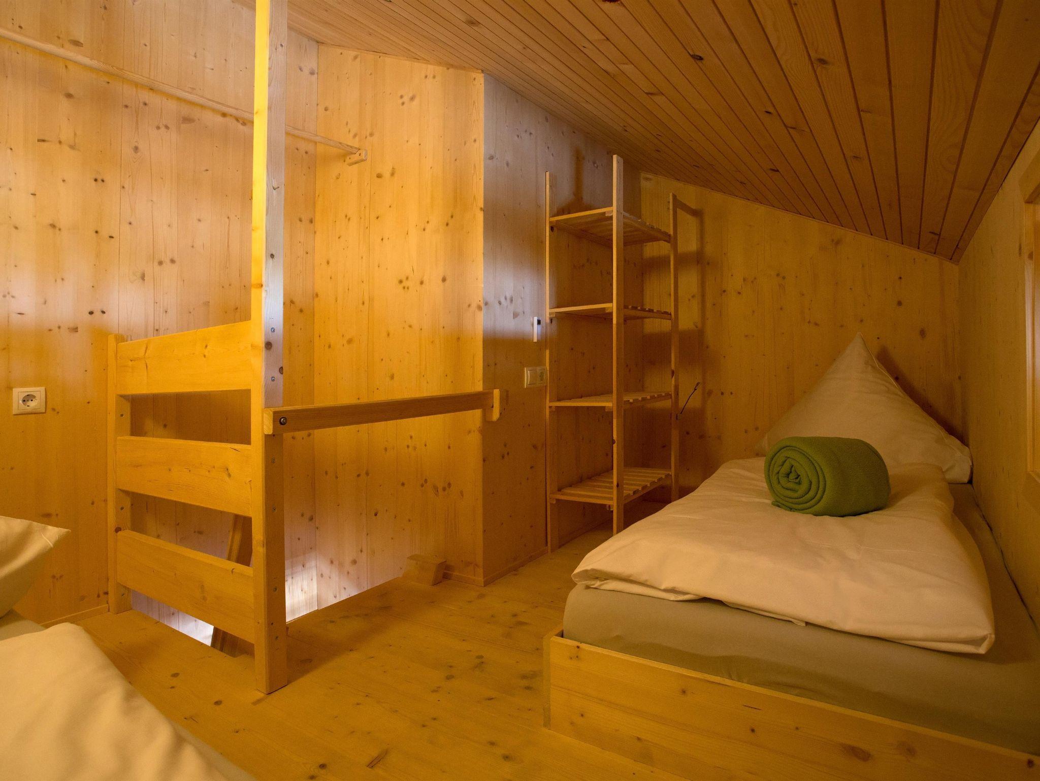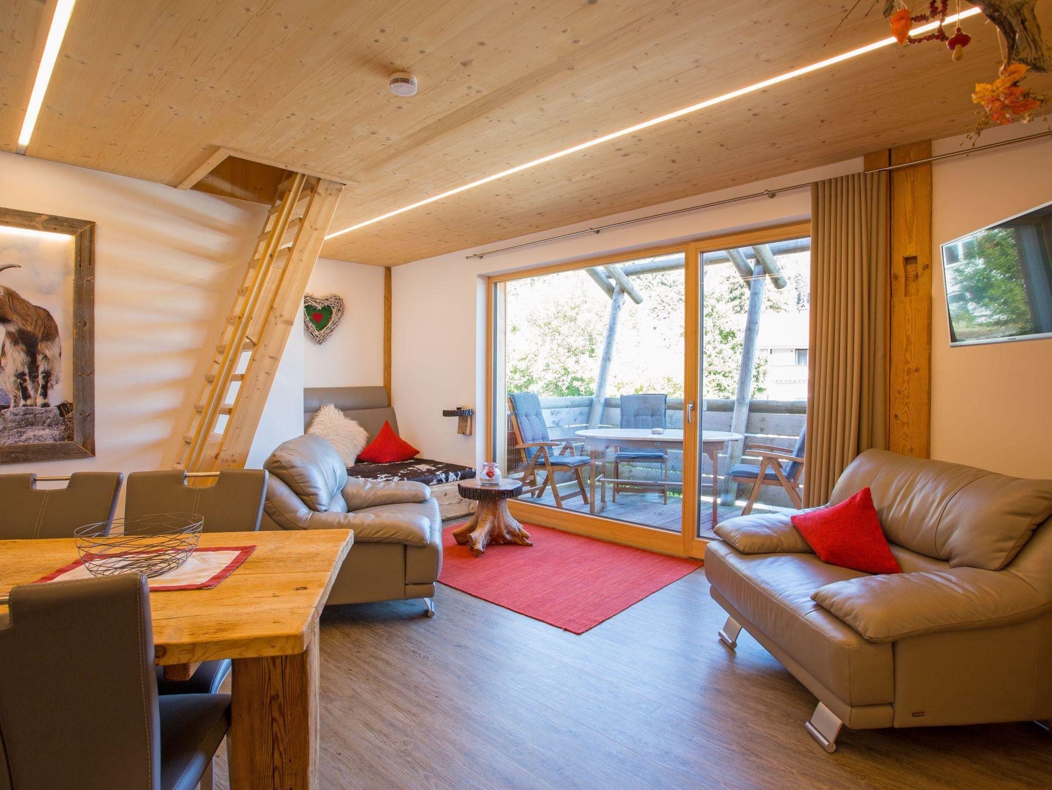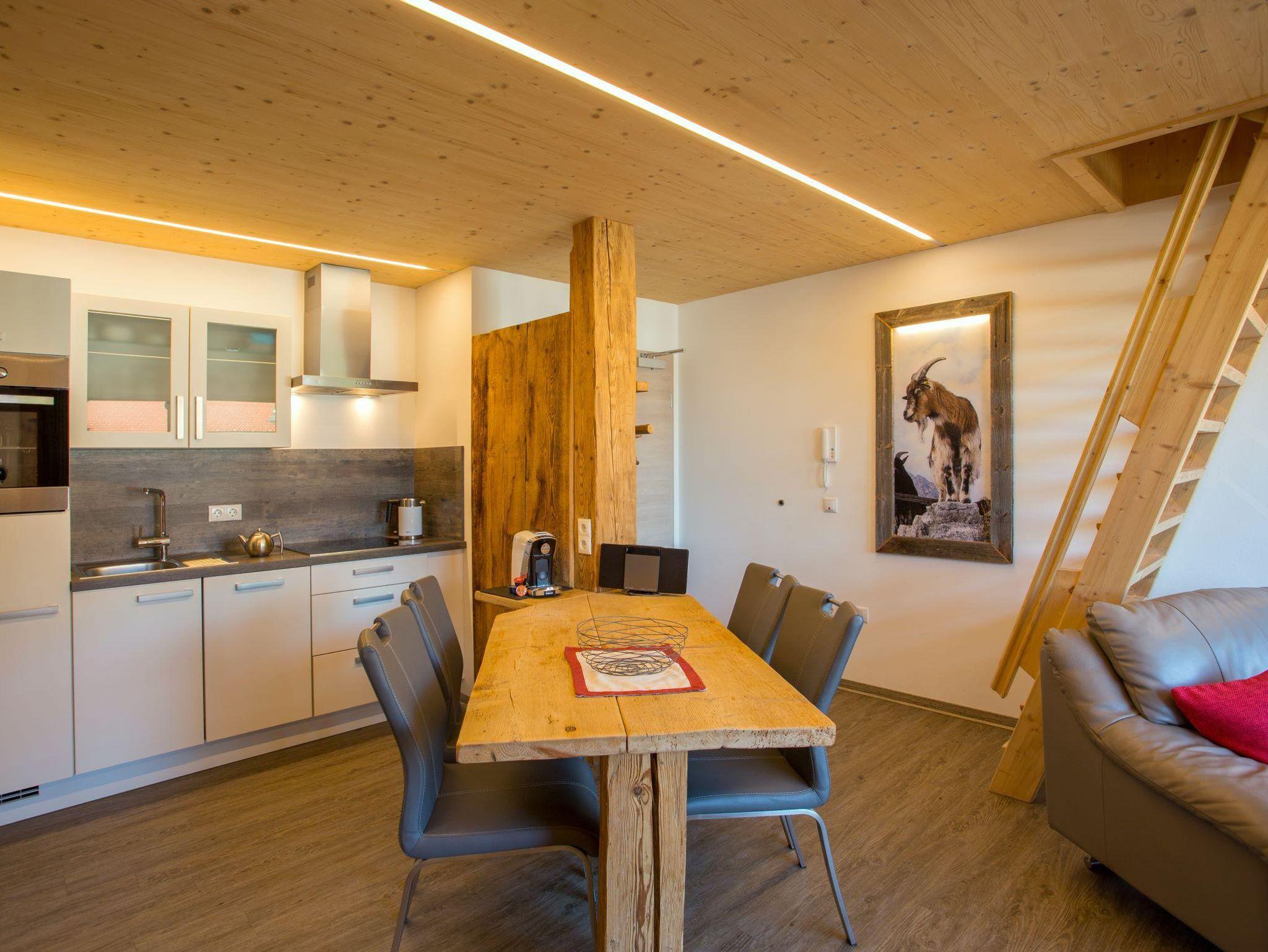 Das Chalet Geißbock für 2-4 Personen befindet sich im ersten Stock und ist nach Nord-West ausgerichtet. Mit seinem großen Panaromafenster und großzügig gestalteten Wohnbereich, eingearbeitetem Fichten-und Altholz lädt dieses Ambiente zum Entspannen ein.