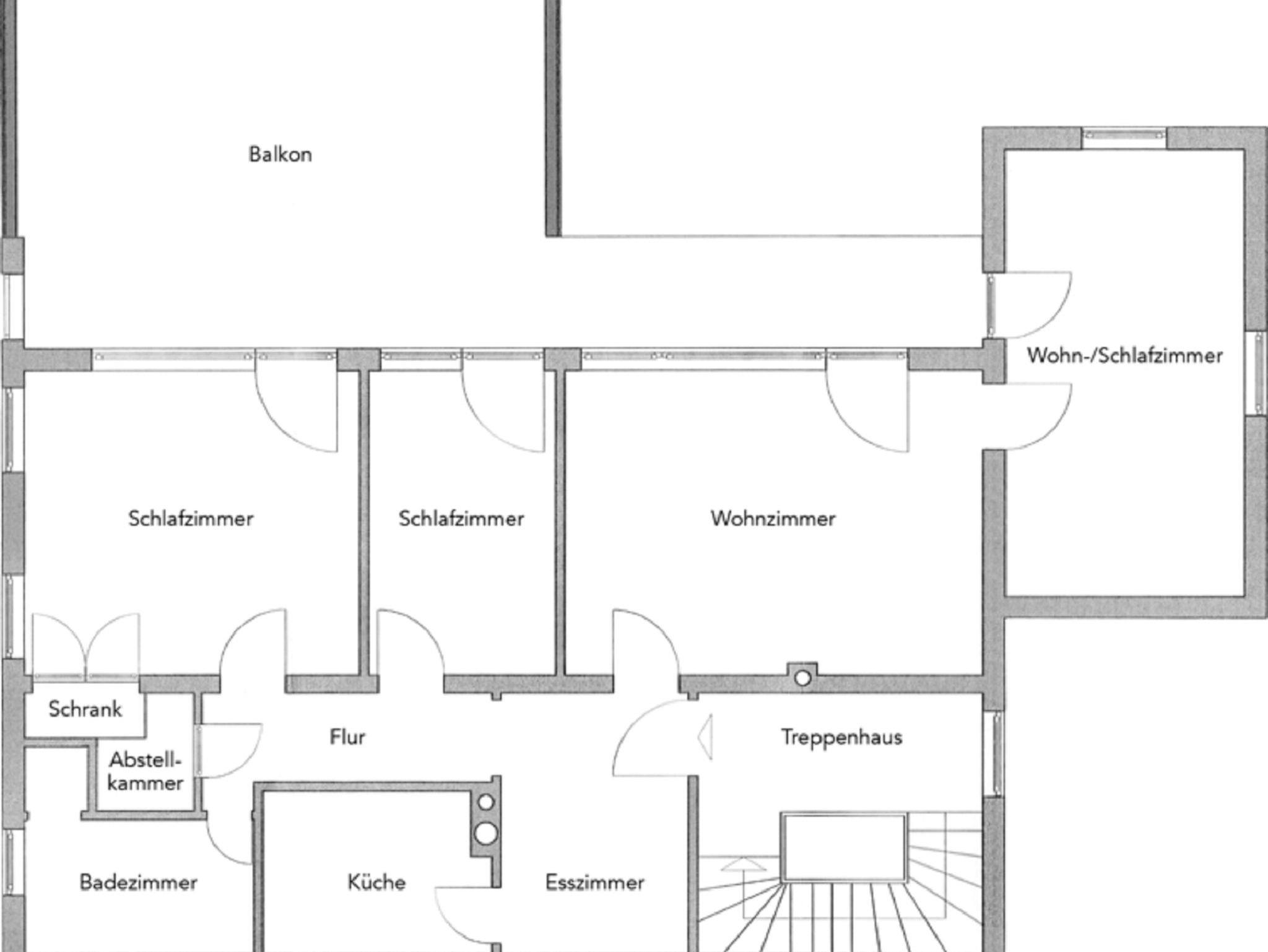Das Chalet beinhaltet 2 Schlafzimmer, 1 Wohn-Schlafzimmer mit einer Ausziehcouch, 1 separate Küche mit anschließendem Esszimmer,