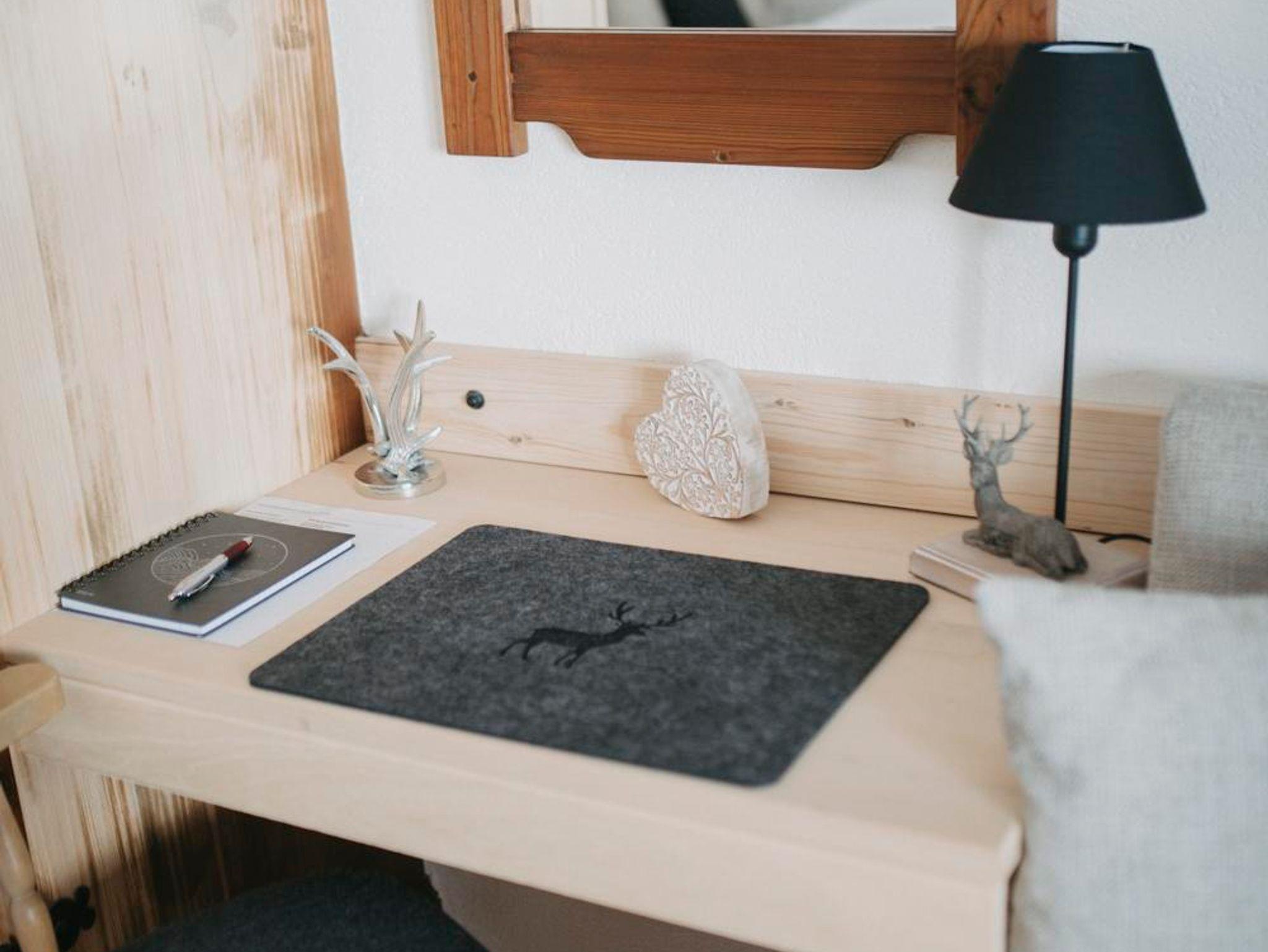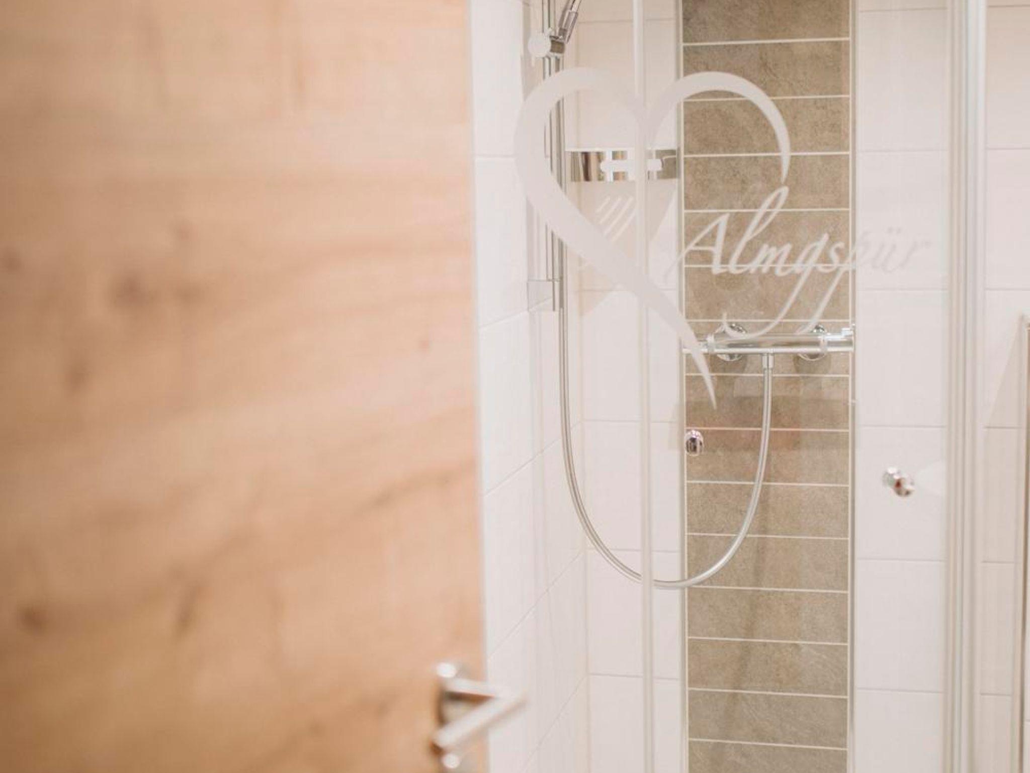 Ferienwohnung Almgspür Erleben Sie authentisches Almhüttenflair im Almgspür, einem modern-urigen Apartment im 1. Stock mit einem atemberaubenden Bergpanorama vom Südbalkon. Mit 52 m² bietet es ein Schlafzimmer mit einem komfortablen King-Size-Bett aus Wildeiche, Smart-TV und eine Wohnküche mit voll ausgestatteter Küchenzeile, Essecke, gemütlichem Sofa und liebevollen Dekorationen. Genießen Sie den traumhaften Ausblick nach einer Wanderung oder Radtour. Zur Ausstattung gehören auch ein Bad mit Dusche, WC, Kosmetikspiegel, Fön, Garderobe, Kleiderschrank, Safe und kostenfreies WLAN. Profitieren Sie von unseren verschließbaren Unterstellmöglichkeiten für E-Bikes und die Nutzung des gepflegten Gartens sowie der Sonnenterrasse. Ein großer Parkplatz steht ebenfalls zur Verfügung. Entspannen Sie in dieser idyllischen Rückzugsoase und genießen Sie die Morgensonne und den unvergleichlichen Blick auf die Berge.