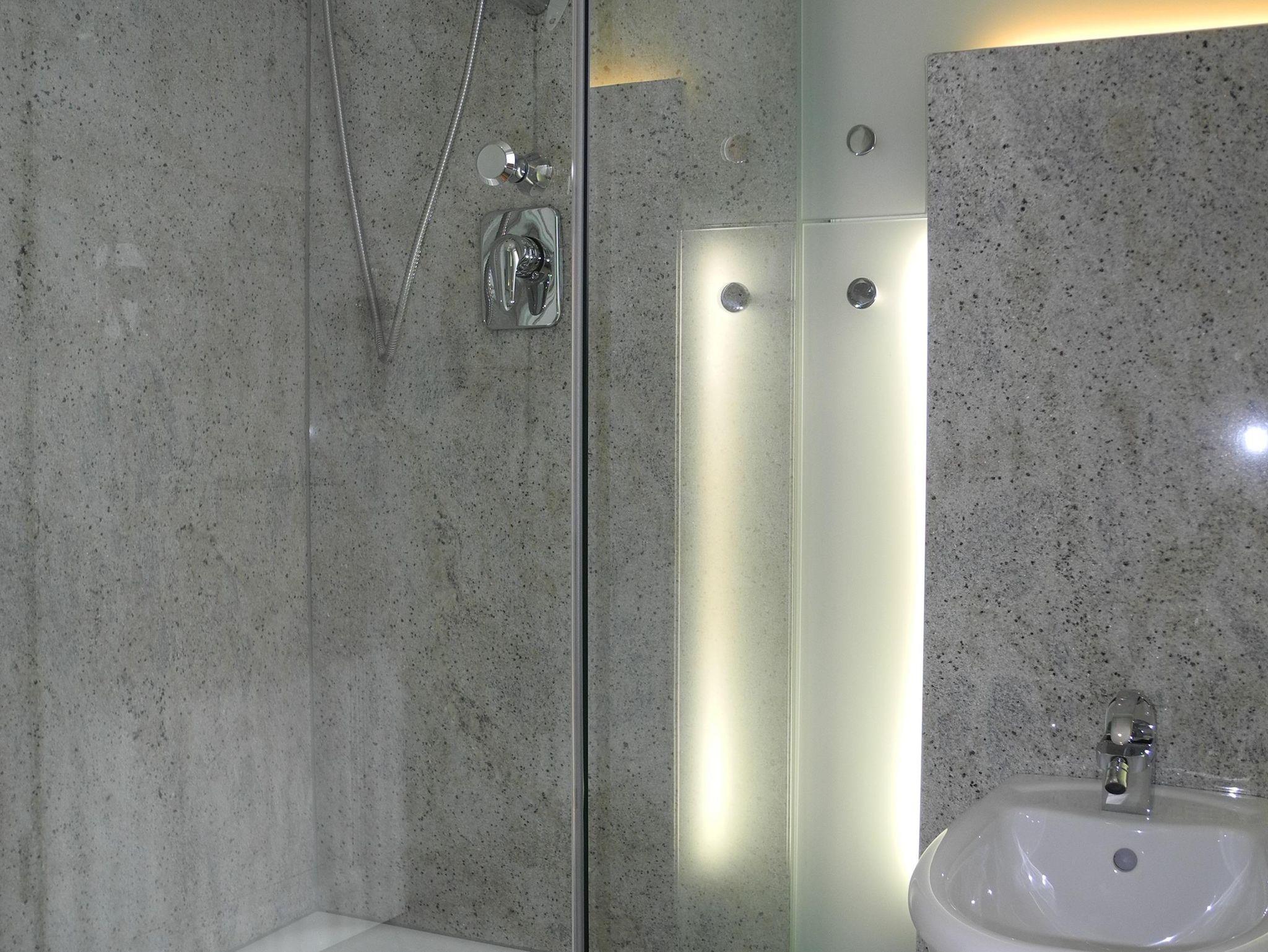 Bad: Dusche, WC, Bidet, Handtuchwärmer, Kosmetikspiegel, Handtücher