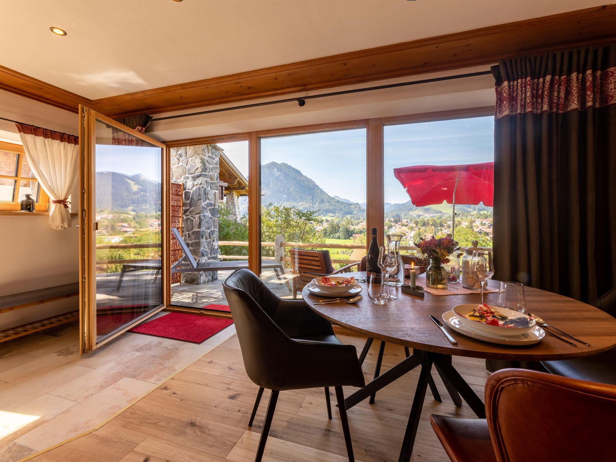 • Wohn-/Essbereich mit Panoramafenster Richtung Pfrontener Tal