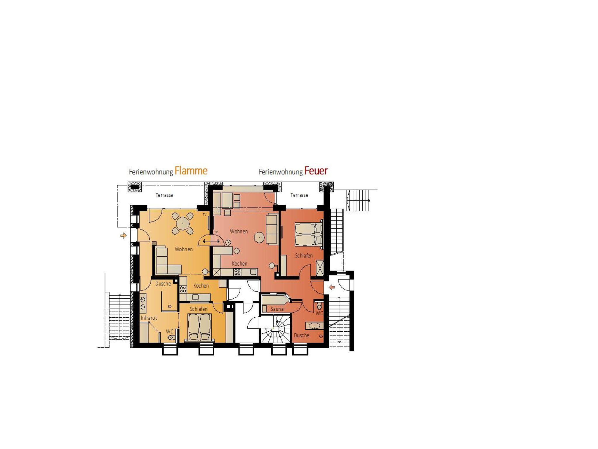 Gerne können die Wohnungen FEUER und FLAMME auch gemeinsam genutzt werden. Durch eine schalldichte Verbindungstüre können Sie in die anliegende Wohnung gelangen und Zeit gemeinsam verbringen.