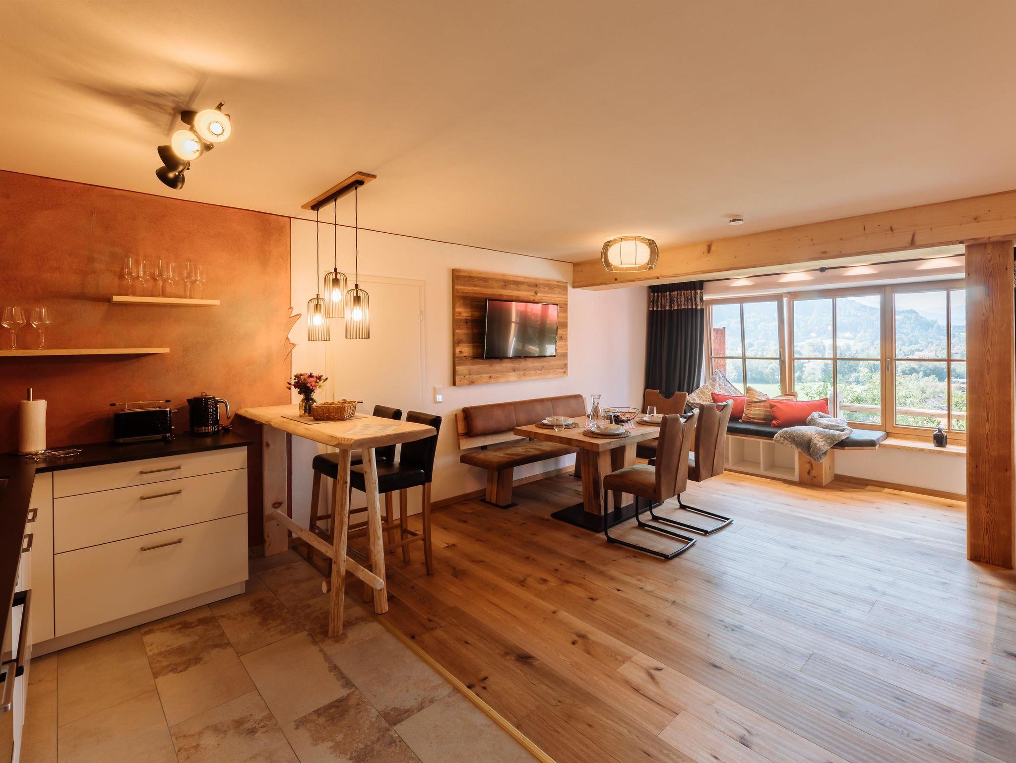 • Wohn-/Essbereich mit Panoramafenster Richtung Pfrontener Tal