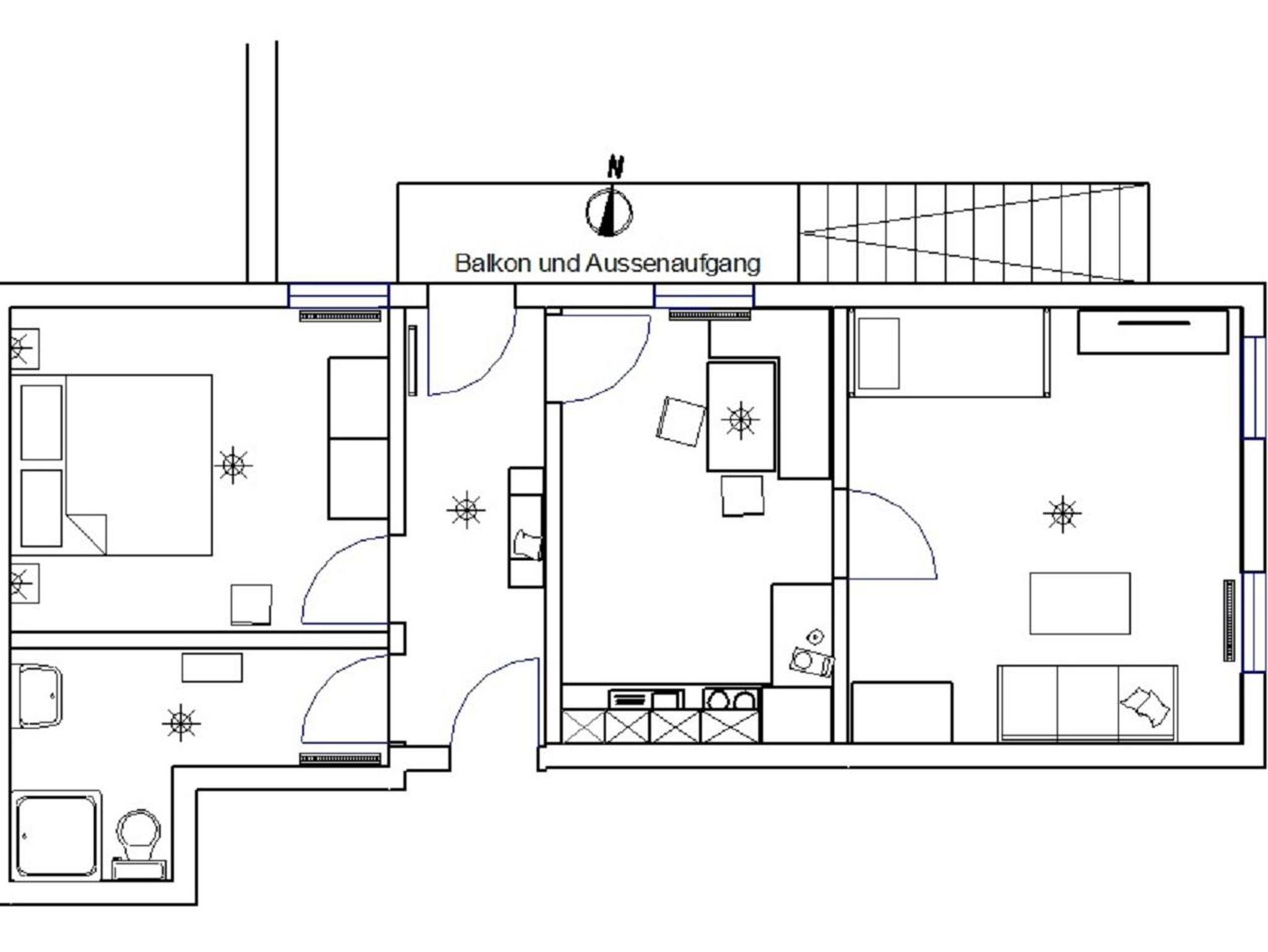 Die großzügige Ferienwohnung mit 50qm bietet genügend Platz für bis zu 4 Personen. Sie verfügt über einen Nord-Balkon, der zudem als seperater Wohnungseingang dient, mit Blick über den Garten, so haben Sie Ihre spielenden Kinder immer im Blick. Die Ferienwohnung hat ein Schlafzimmer mit einem Doppelbett sowie einem Kombinierten Wohn- und Schlafzimmer mit ausziehbarer Schlafcouch und einem 40 Flachbildfernseher mit Sat-Anschluss. Die Wohnküche ist mit einem kleinem Fernseher sowie einer Küchenzeile mit Kaffeemaschine, Kühlschrank, Wasserkocher, Spülmaschine, Backofen und 4-Platten-Kochfeld eingerichtet.