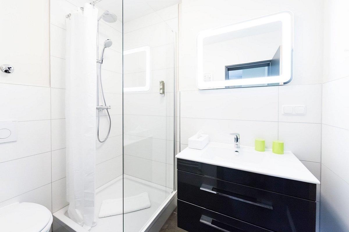 • zwei Badezimmer mit Dusche und WC