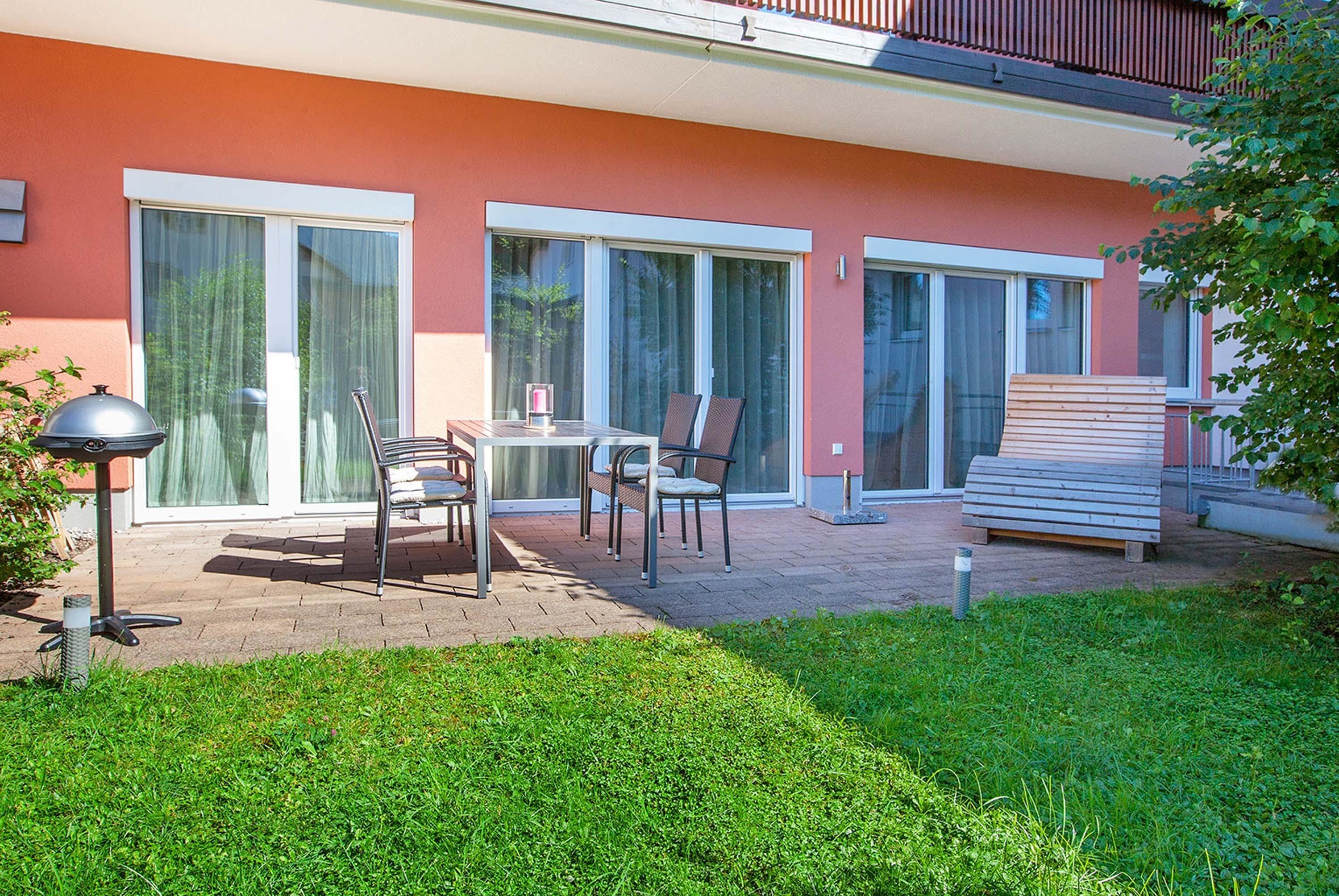präsentiert sich unsere Lodge 5, eine Erdgeschosswohnung mit moderner Ausstattung. Wohn-Essbereich mit 2 Zugängen zur überdachten Westterrasse mit eingezäuntem Gartenbereich. Schlafzimmer mit Doppelbett und weiterem Terrassenzugang. Das Kinderzimmer mit franz. Bett (140x200), ohne auf den Allpenraumkomfort verzichten zu müssen. Geräumiges Badezimmer mit großer, begehbarer Dusche. Diese Wohnung überzeugt durch klare Strukturen und Gestaltungselemente und bietet dadurch viel Platz für 2 bis 4 Personen.
