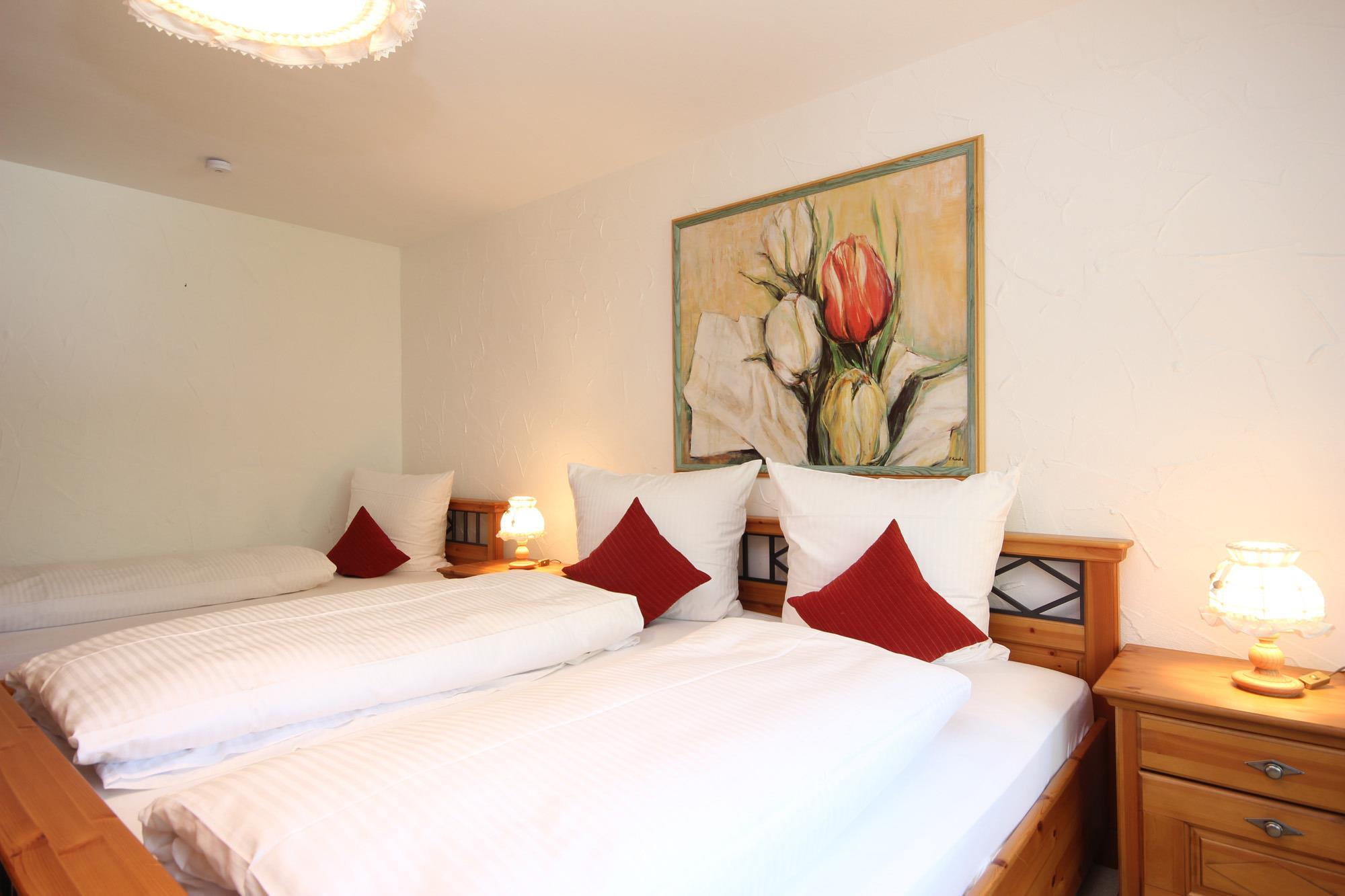 2 Schlafzimmer ausgestattet mit Doppelbetten, je einem Einzelbett und mit Kleiderschrank (3 Personen/SZ)