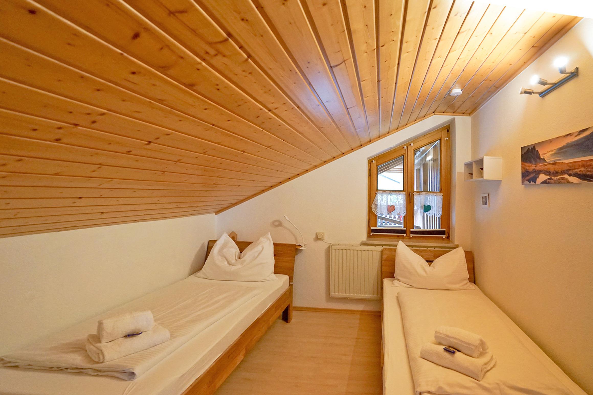Kinderzimmer mit zwei Einzelbetten, alle Betten mit offenen Bettenden