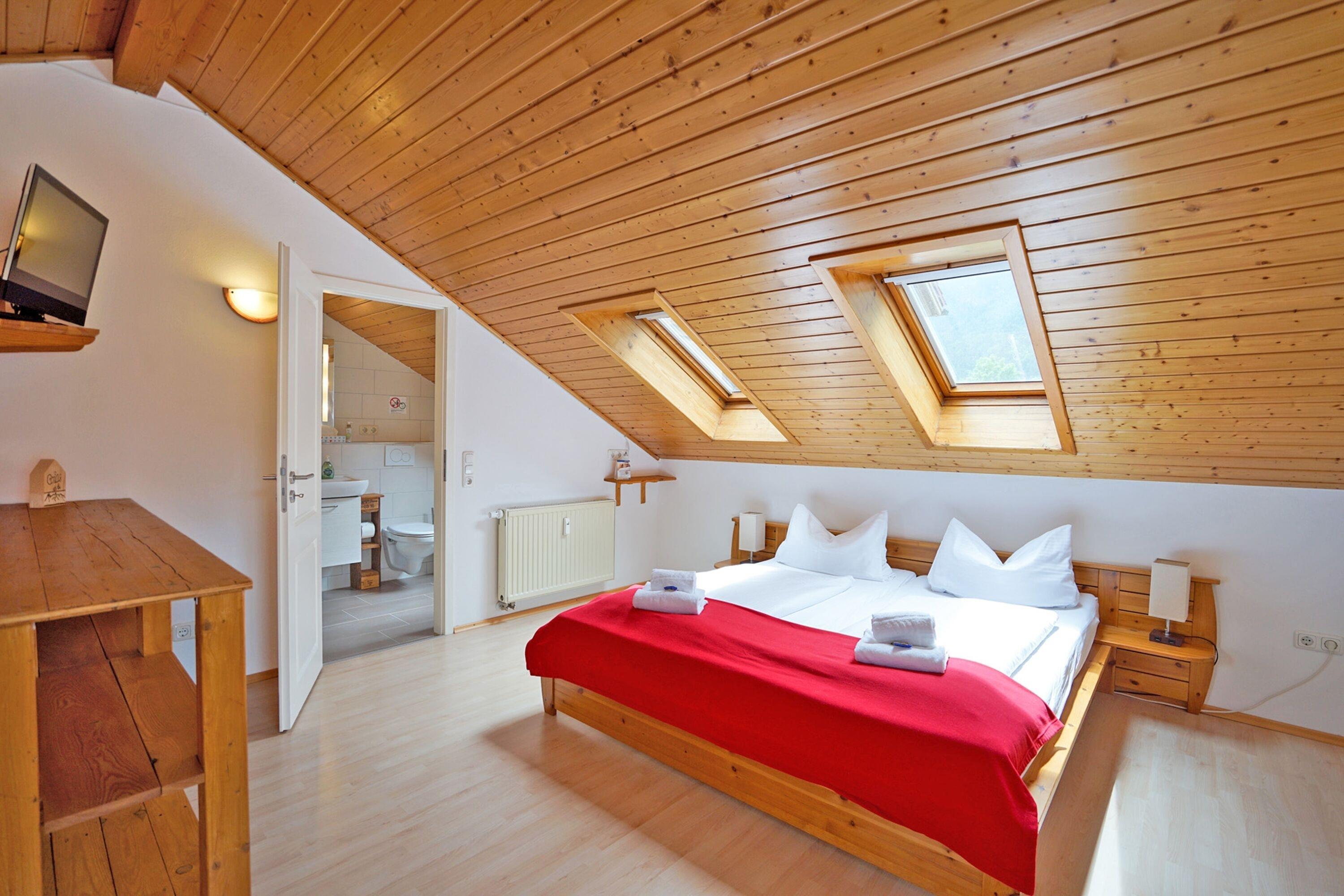 Schlafzimmer ausgestattet mit einem Doppelbett und Kommode, zusätzliches Einzelbett mit
