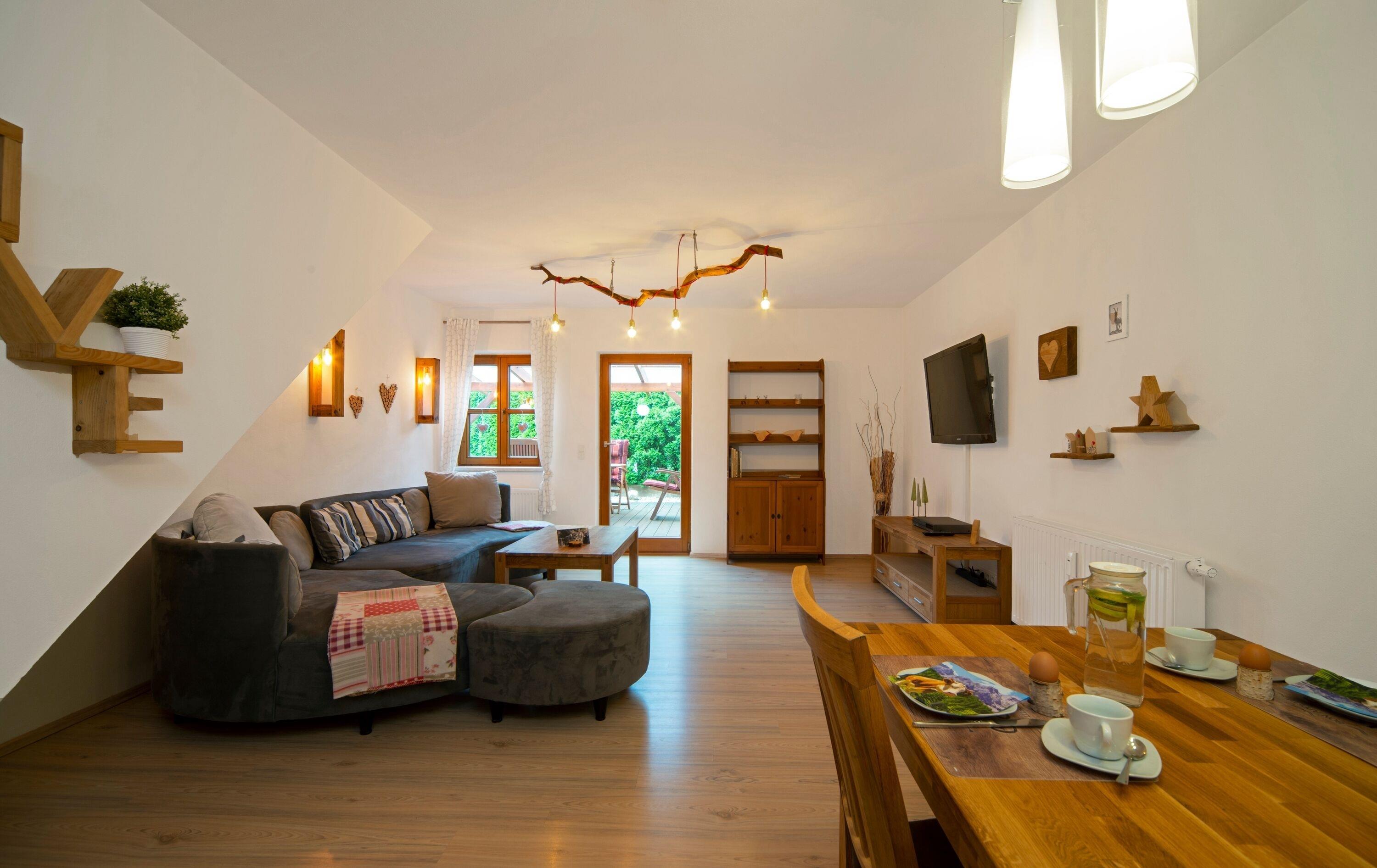 Herzlich Willkommen in der charmanten 4-Sterne-Ferienwohnung Gipfelglück, die im modernen Allgäuer Landhausstil gestaltet ist! Hier erwartet Sie eine großzügige 3-Zimmer-Wohnung auf etwa 100 m², ideal für 2-5 Personen. Selbstverständlich ist WLAN für Sie inklusive. Die Wohnung bietet Ihnen eine hochwertige, voll ausgestattete Küche mit Zugang zur überdachten Terrasse, die zum Entspannen einlädt. Der sonnige Außenbereich mit Blick auf den Breitenberg kann ebenfalls aus dem gemütlichen Wohn- und Essbereich betreten werden. Im Obergeschoss erwarten Sie urige holzverkleidete Räume: Ein Schlafzimmer mit einem komfortablen Doppelbett und einem zusätzlichen Einzelbett, sowie ein separates Kinderzimmer mit zwei Einzelbetten.[nbsp] Das moderne Badezimmer ist mit einer begehbaren Dusche, WC und Waschmaschine ausgestattet. Ein Gäste-WC ist ebenso vorhanden.