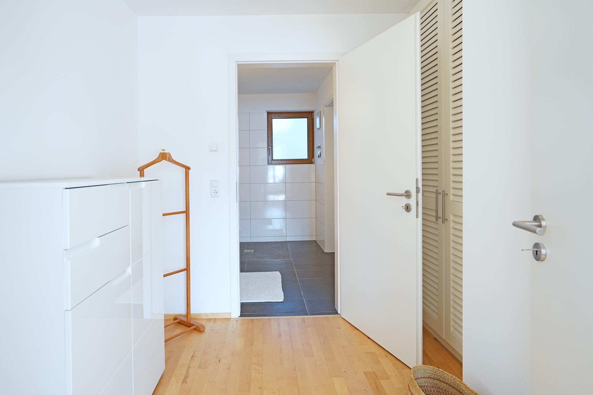 Schlafzimmer mit Doppelbett (160x200) und angrenzendem Ankleidezimmer