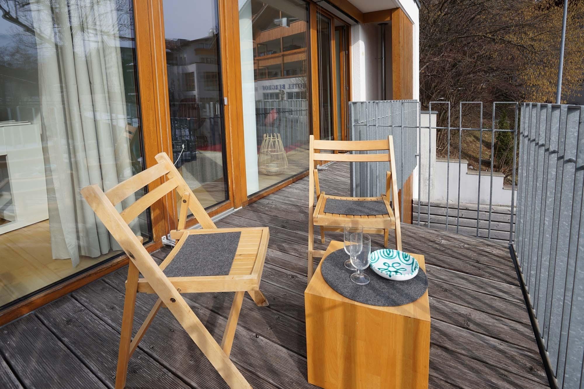 sonniger Balkon, mit Sitzmöbeln
