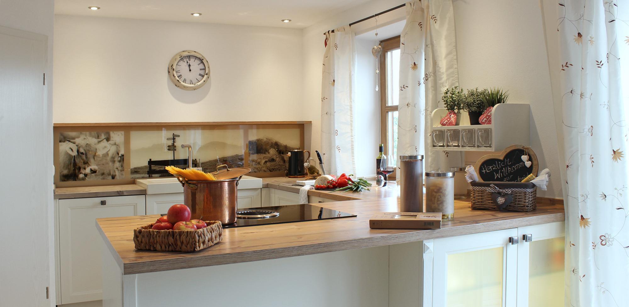 offener, großzügiger Küche mit gemütlichem Essplatz im Allgäuer Stil, inkl. Speis