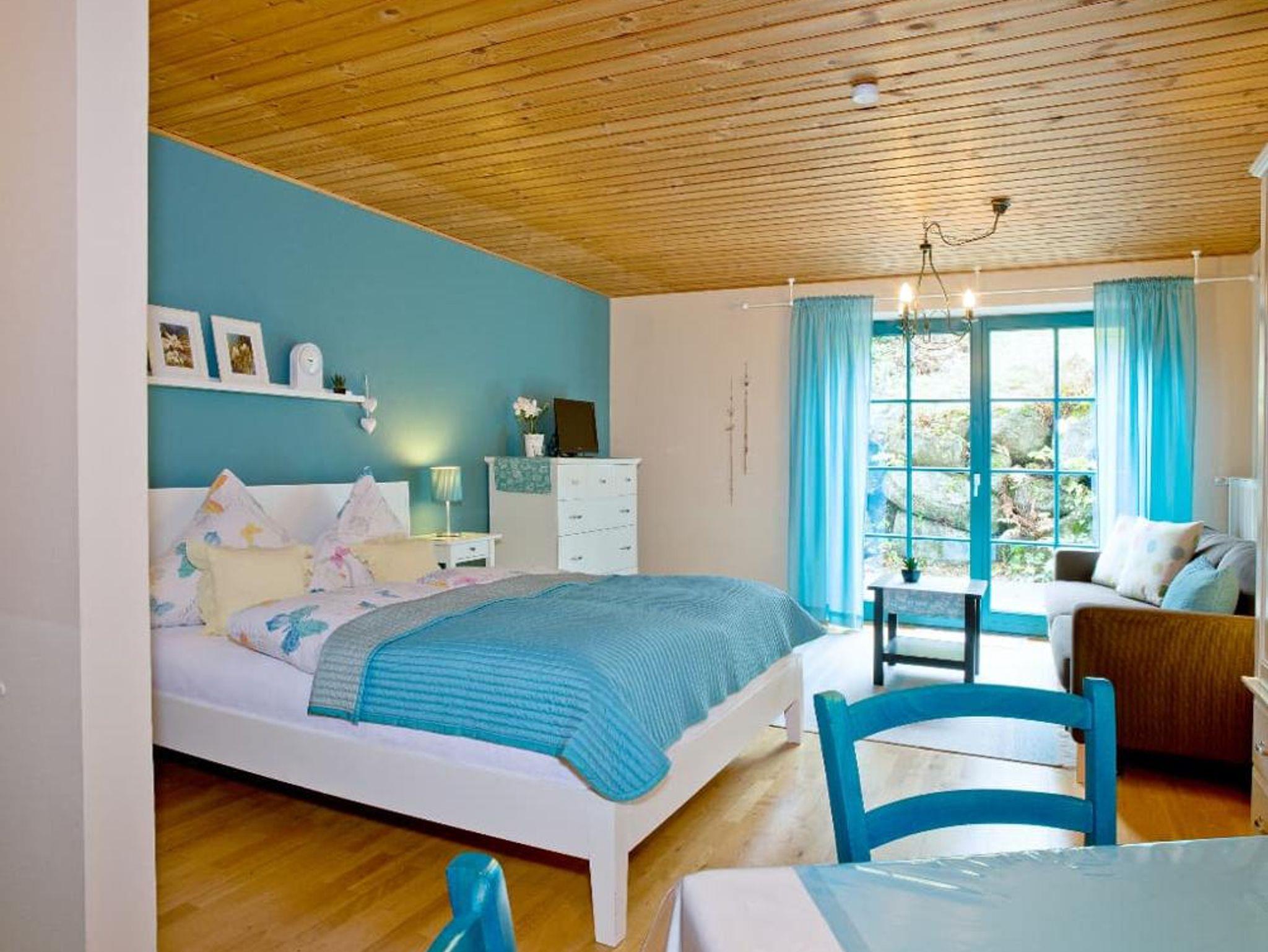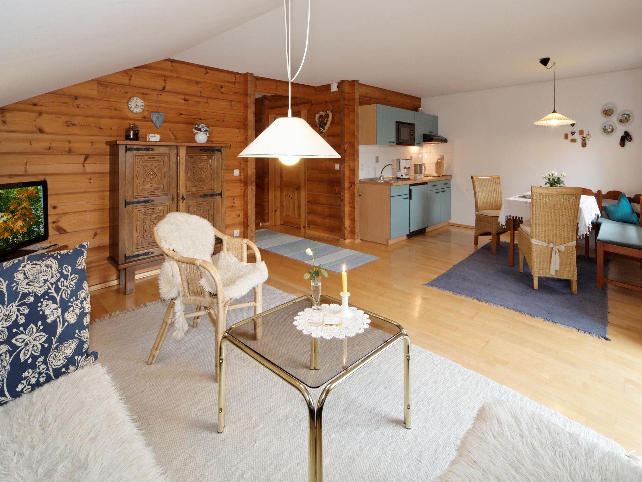 WohnungLusen 1-Zi.Komfort-Ferienwohnung mit 36 qm und kleiner Terrasse, liegt im Untergeschoß auf der Südseite des Ferienhauses. Sie finden eine sehr gut ausgestattete und gemütliche kleine Fewo, mit großer Sitzecke (kann als tt ausgezogen werden), Sat-TV/Flachbildschirm, CD-Player/Radio, Doppelbett (160x200cm) mit sehr gut ausgestatteter Bettenausstattung und schöner Bettwäsche für guten Schlaf, kleine Essecke mit vier Stühlen, Küchenzeile (mit Micro, 2-Platten-Herd, Wasserkocher, Kaffeemaschine, Kühlschrank, Mixer, reichlich Geschirr u.Küchenuntensilien), Badezimmer mit Dusche, WC, Fön, Schminkspiegel, reichlich Hand-u.Badetücher, Eingangsdiele mit Garderobe und Gartenmöbel (Stühle, Tisch, Sonnenschirm u. Liege) auf der Terrasse.