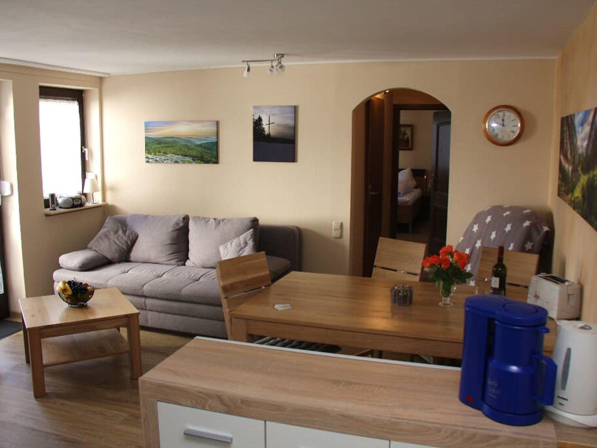 Das Appartement Nr. 11 ist Rauch und Tierfrei und hat 66 m².Es verfügt über ein neues Schlafzimmer mit Doppelbett, Nachttischchen, Schrank und ausreichend Stellmöglichkeit für ein Kinderbett. Im Kinderzimmer ist ein neues Stockbett und ein drittes flexibles Bett. Kleine Box mit Spielsachen und ein Bettgitter vorhanden. Im Wohnraum steht ein Esstisch für 5 Personen, eine Couch, ein Sat-Fernseher mit DVD/Blu-ray Player und Radiofunktion, ein CD-Player mit USB Anschluß und ein Fernsehsessel. Küchenzeile komplett ausgestattet mit Backofen, Herd, Kühlschrank, Spülmaschine, Mikrowelle, Tischgrill, Kaffeemaschine, Toaster und Wasserkocher. Im Badezimmer ist eine Badewanne, WC, Waschbecken, Spiegelschrank und ein Fön.Terrasse mit Tisch und Stühlen vorhanden. An Fenstern befinden sich Fliegengitter, sie lassen sich mit Rolläden abdunkeln.Rauch- und Tierfrei!W-LANAusstattung und Merkmale:Erstausstattung Handtücher, Tisch und Küchenwäsche vorhanden, Parterre Wohnung, neue Wischböden, Spülmaschine, Wäschegestell vorhanden, Sauna (im Preis inklusive) auf gleicher Etage im Haus, Lebensmittelmarkt auf der anderen Straßenseite, Skiverleih und 3 Lifte in unmittelbahrer Nähe, Start der Trans Bayerwaldstrecke für Mountainbiker, Ausgangspunkt vieler erlebnisreicher Tagestouren.