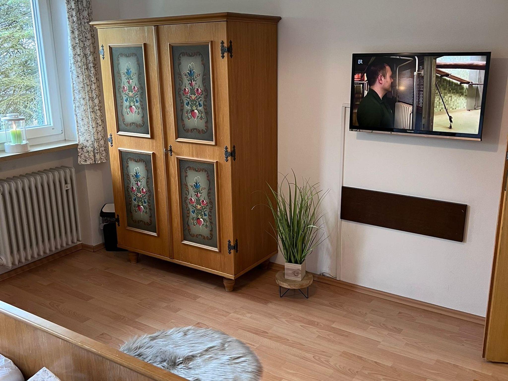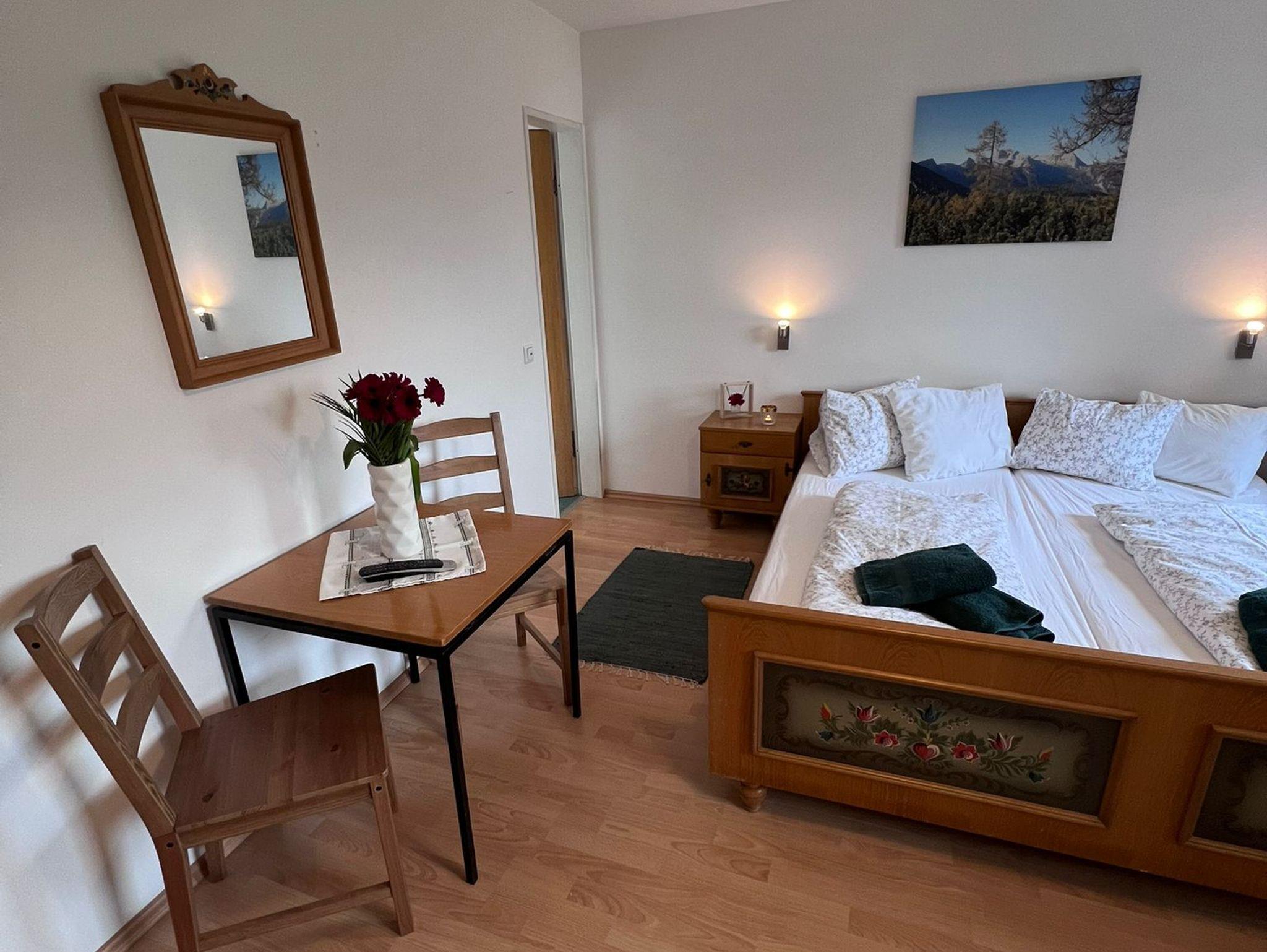 Unser 18qm großes gemütliches Doppel-/Dreibettzimmer im traditionellen bayerischen Stil bietet Ihnen den perfekten Rahmen für einen entspannten Urlaub oder eine Geschäftsreise. Lassen Sie sich vom rustikalen Charme und der komfortablen Ausstattung begeistern.