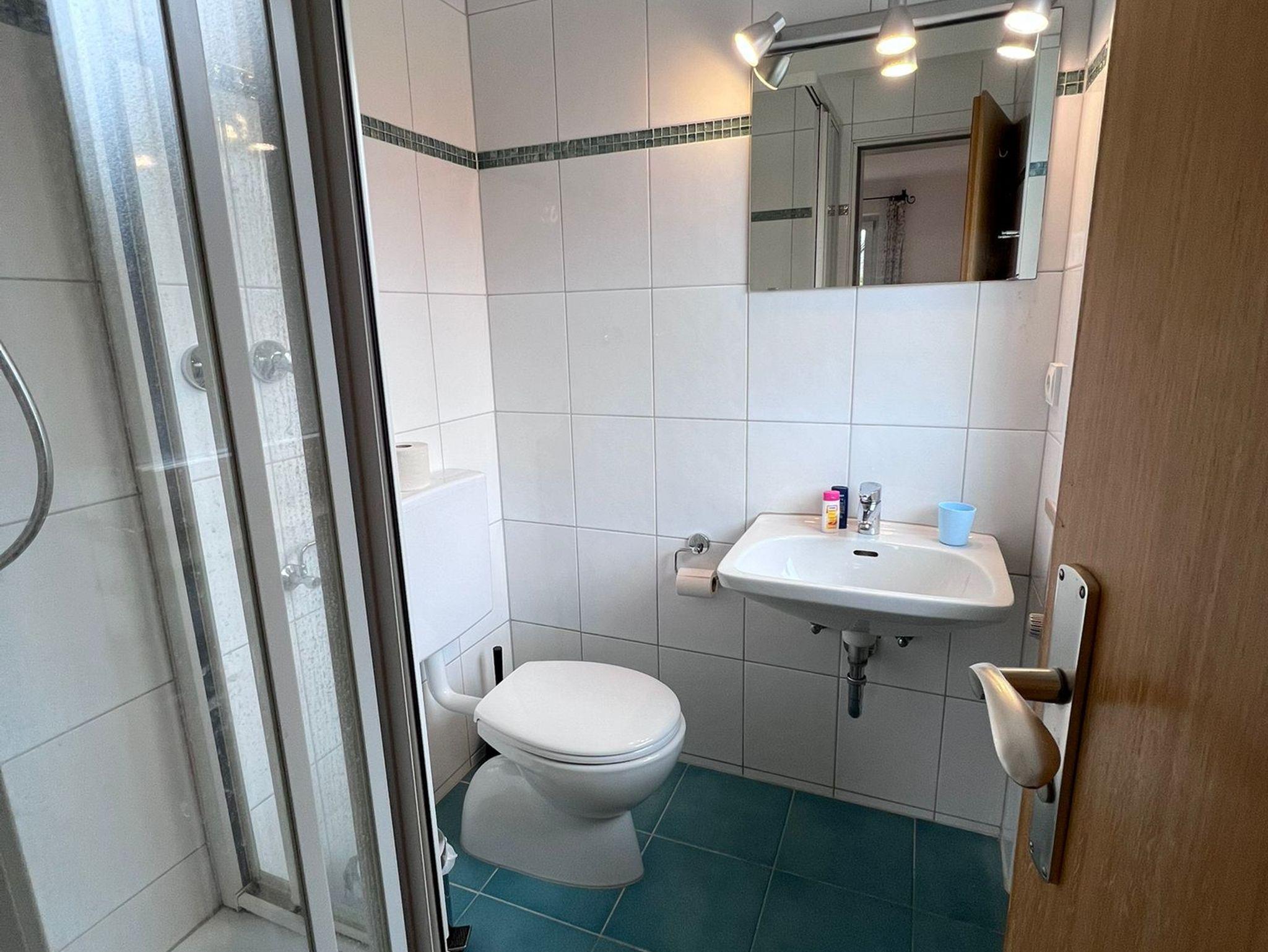 Neues Badezimmer mit Dusche und WC: Starten Sie erfrischt in den Tag mit einer Dusche in unserem modernen Bad.