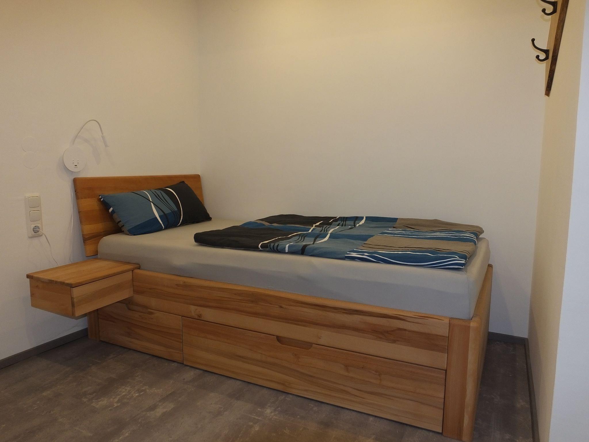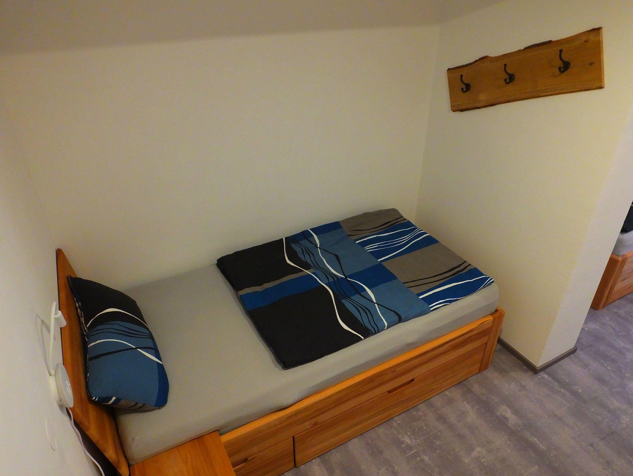 Die Küche ist modern im Holzstil gehalten und komplett ausgestattet, inklusive Spülmaschine, Backofen, Kühlschrank mit Gefrierfach, Tchibo-Kapselmaschine, Filterkaffeemaschine, Toaster und Wasserkocher. Die Schlafzimmer verfügen über Außenrollos und bieten ein Doppelbett mit Einbauschrank bzw. zwei Einzelbetten mit Stauraum. Bettwäsche und Handtücher sind inklusive.