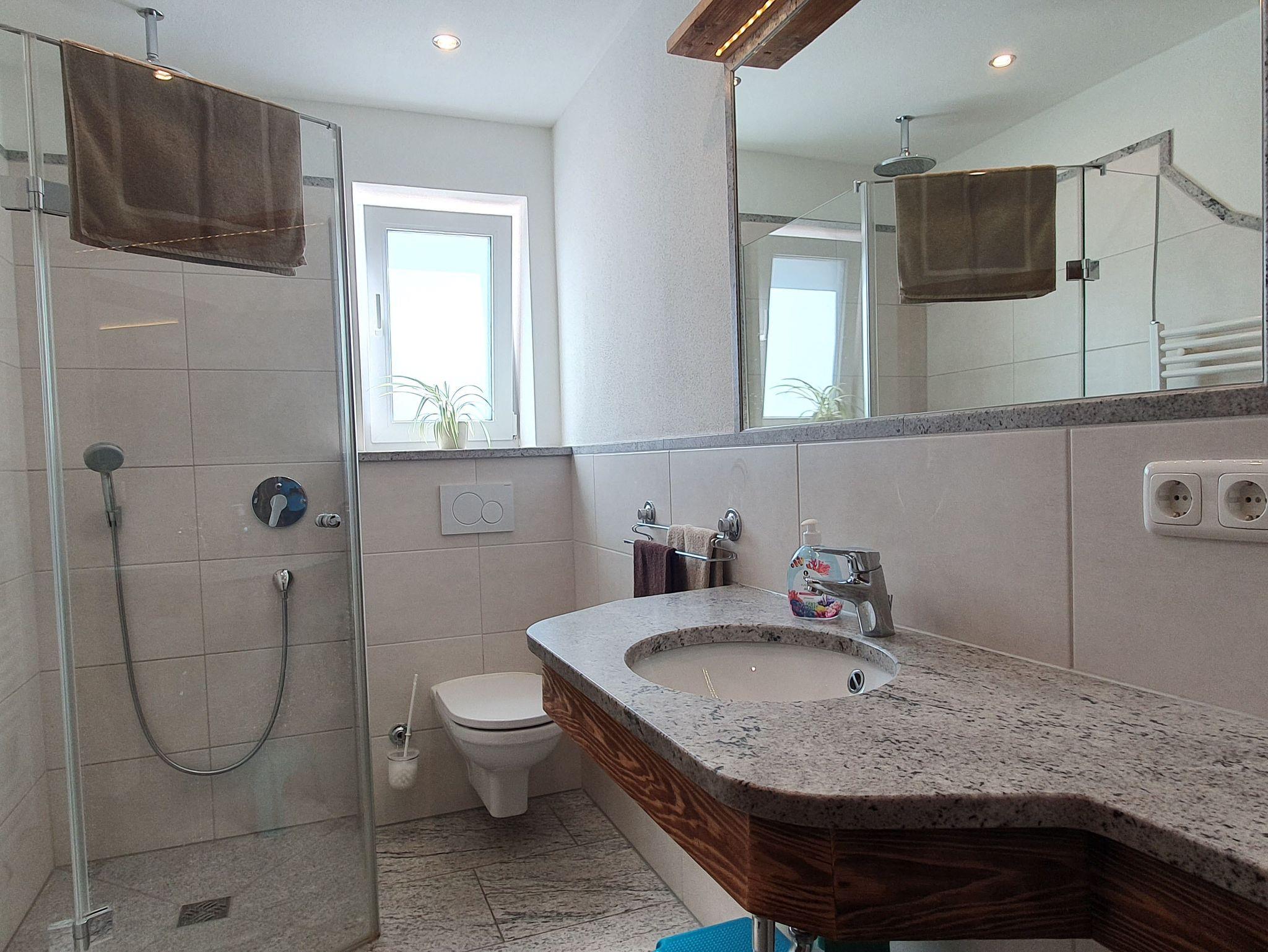 Die Ferienwohnung Rehblick ist mit 4 Sternen klassifiziert und hat 39m². Geeignet für 1-2 Personen hat sie eine neue Wohnküche mit komplett ausgestatteter Küche, sowie Essbereich und gemütlichem Sofa mit Fernseher, 1 Schlafzimmer mit Doppelbett, Bad mit ebenerdiger Dusche und WC. Direkter Ausgang auf die gemütliche Sonnenterrasse mit rustikaler Sitzecke, Sonnenliegen und herrlichem Bergblick.