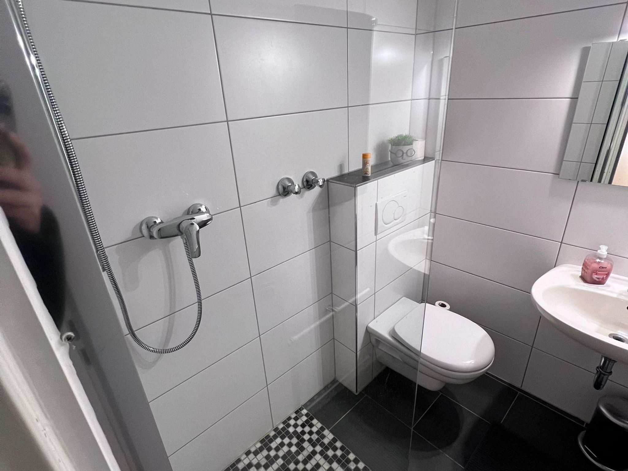 Neues Bad mit Dusche und WC: Starten Sie erfrischt in den Tag mit einer Dusche in unserem modernen Bad.