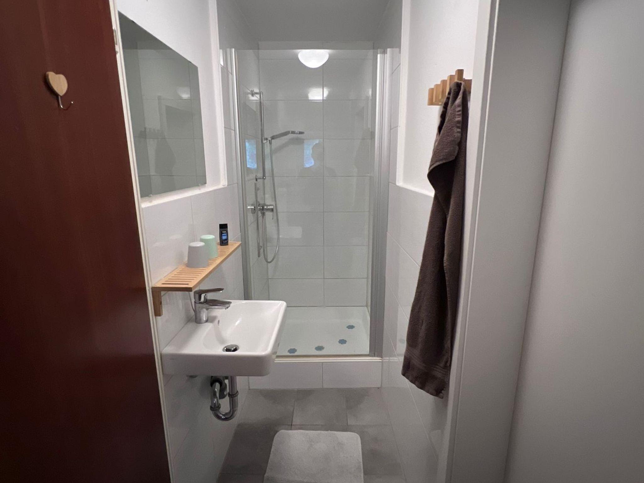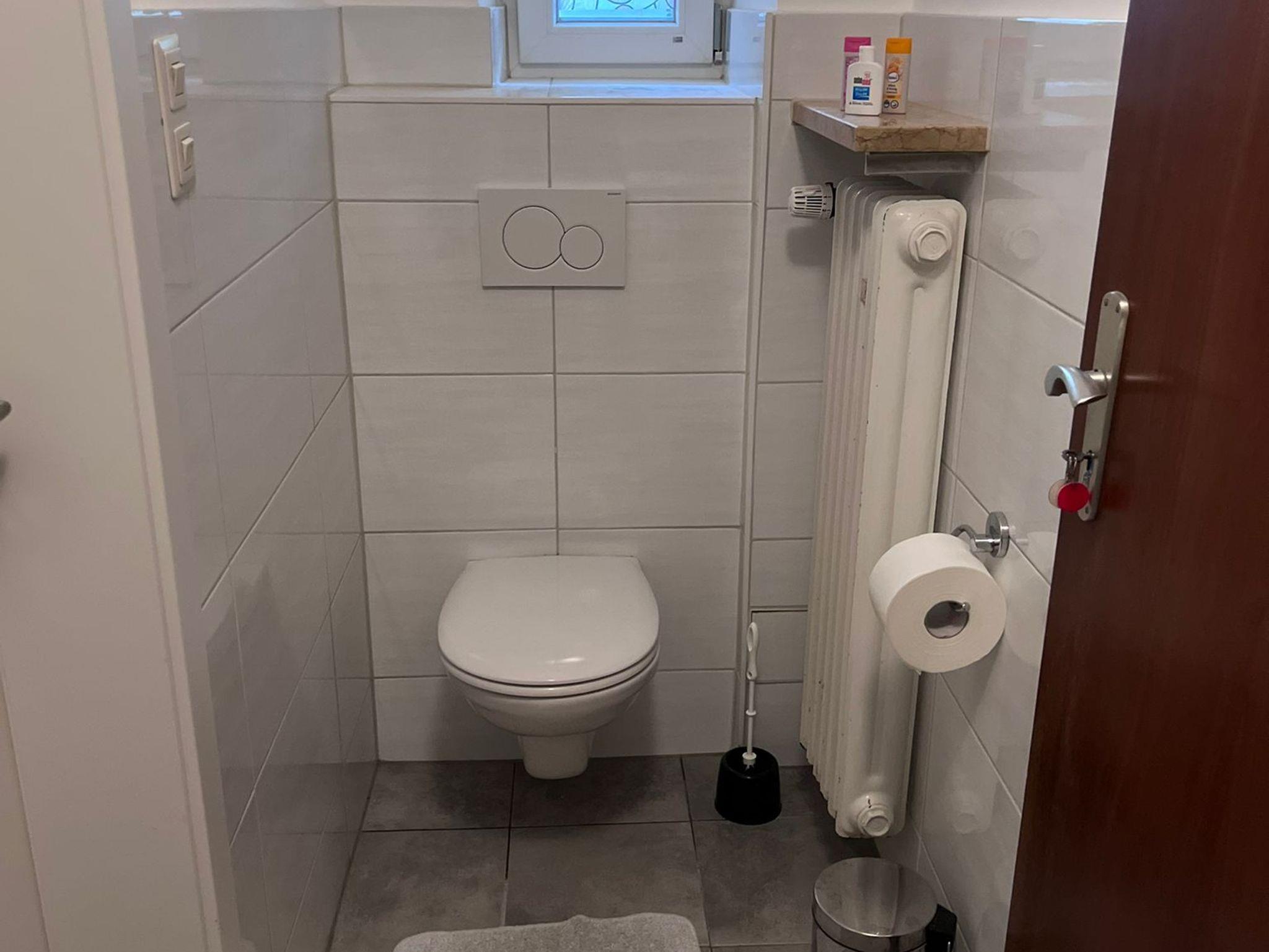 Neues Badezimmer mit Dusche und WC: Starten Sie erfrischt in den Tag mit einer Dusche in unserem modernen Bad.
