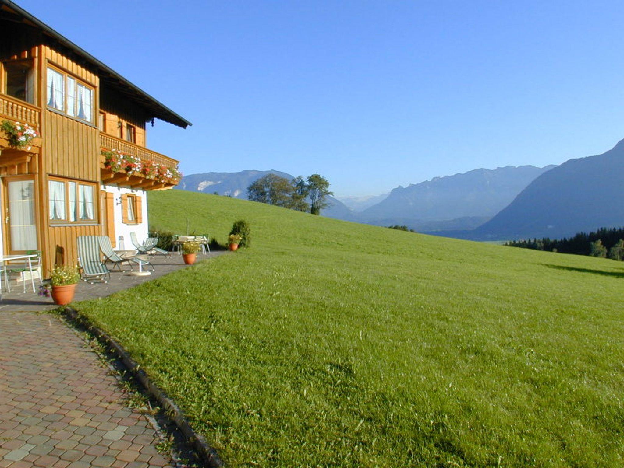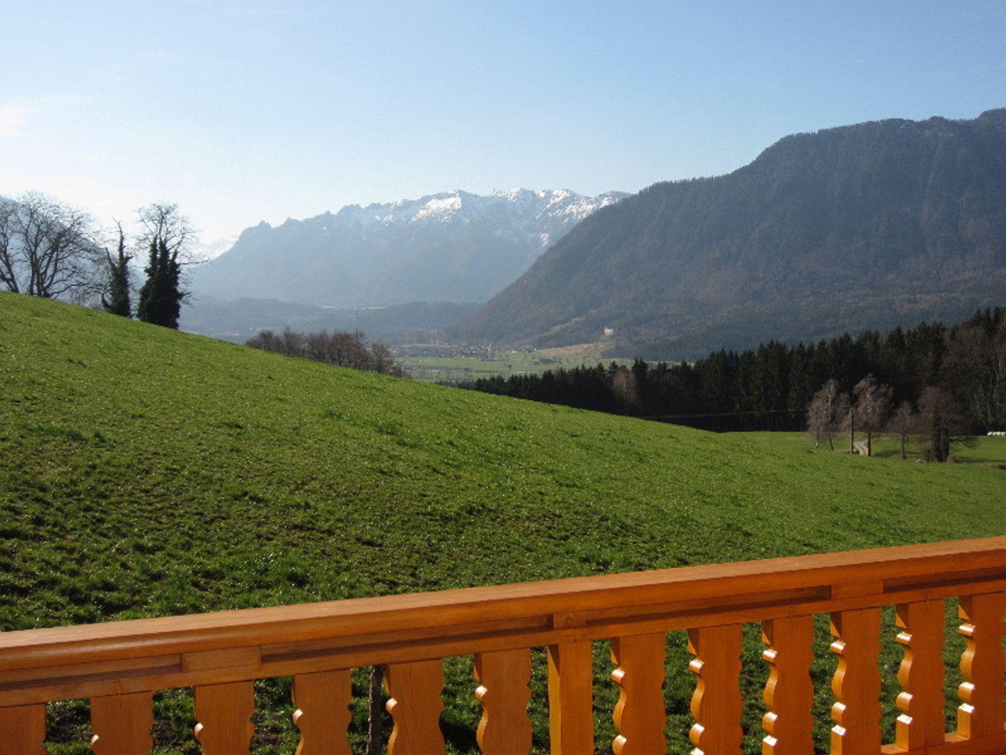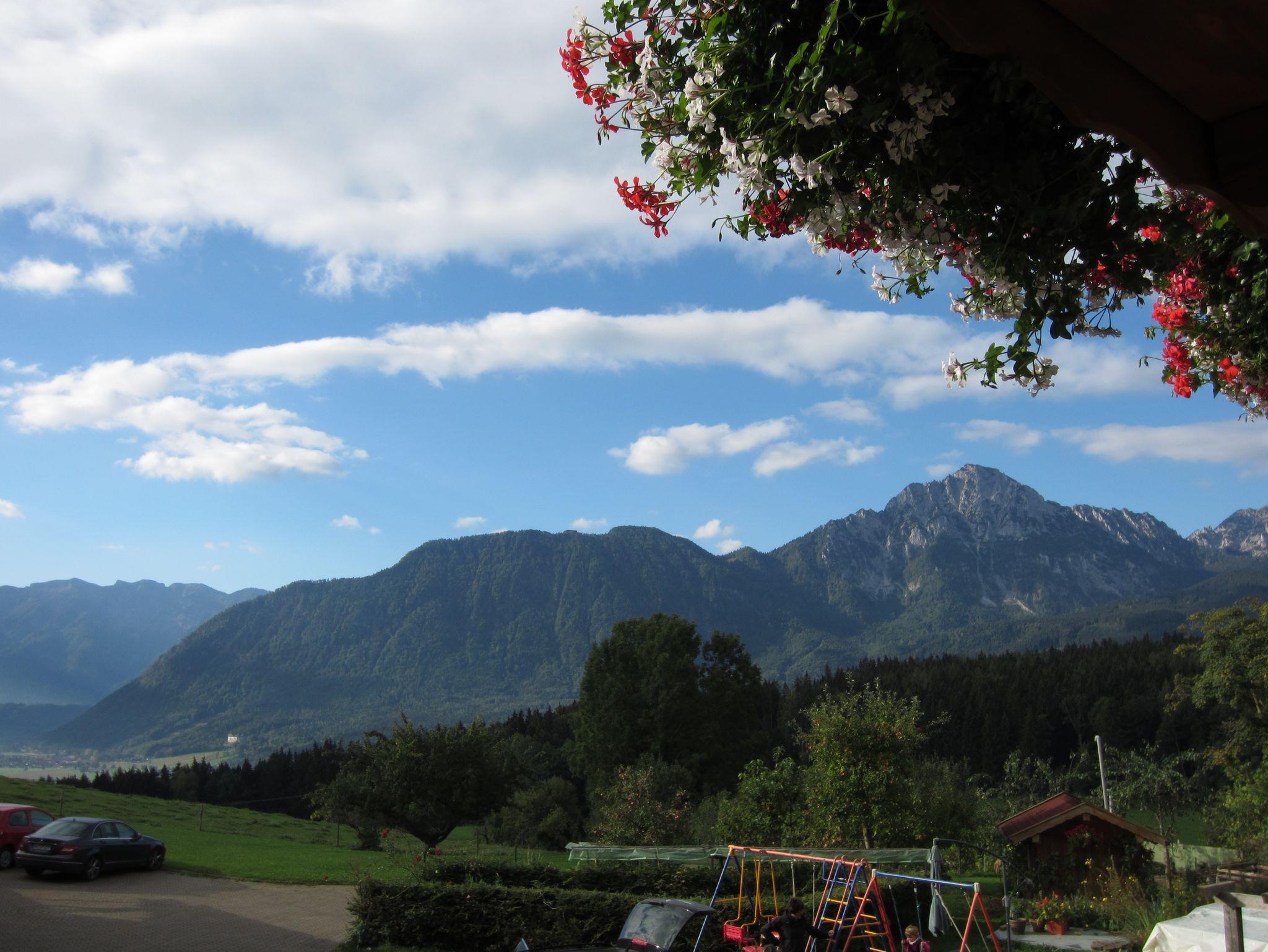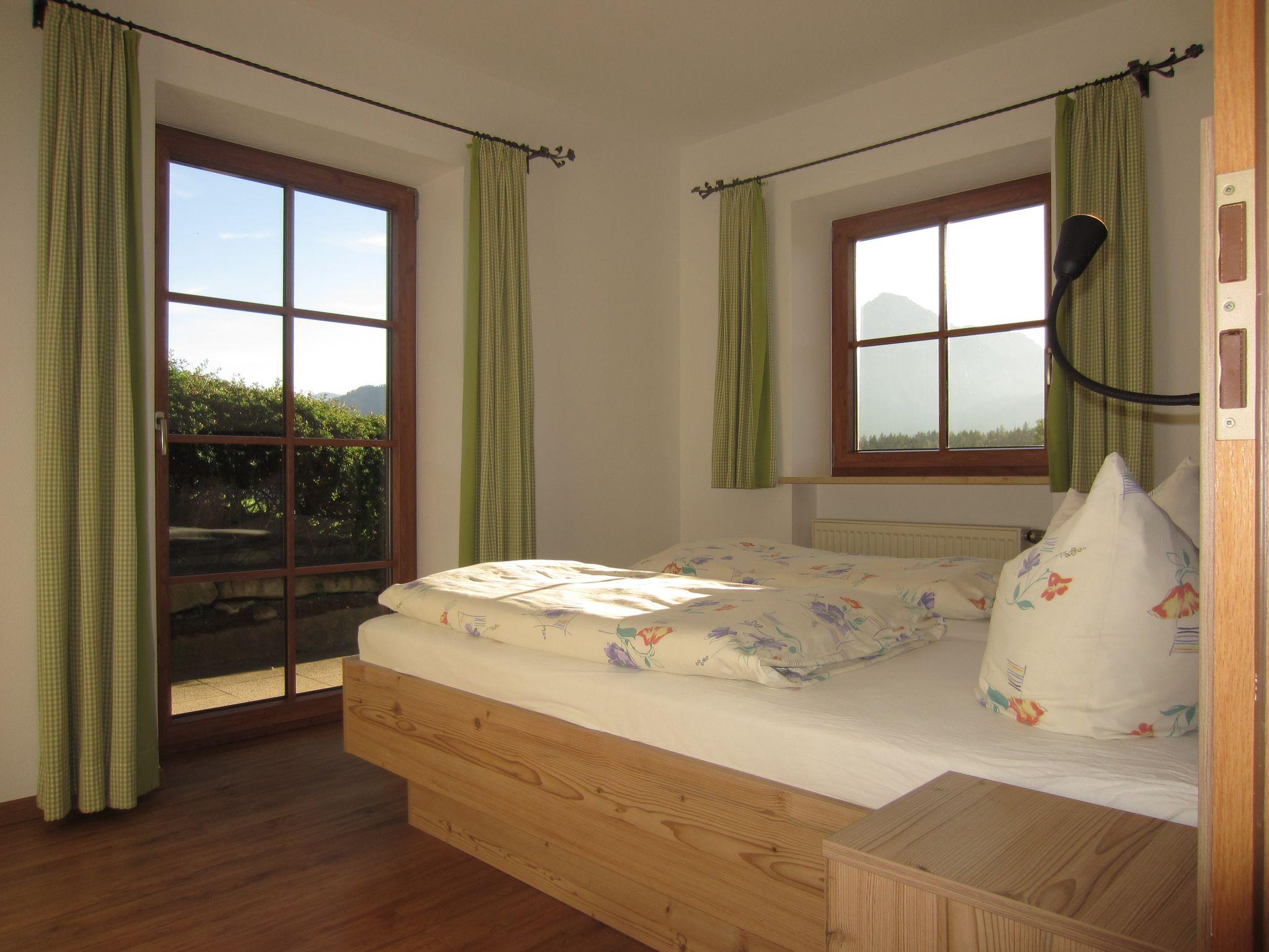 Die Ferienwohnung hat 45 qm² Wohnfläche und ist im Erdgeschoss des Gästehaus. Sie hat eine große Terrasse von der Sie eine traumhafte Aussicht auf die Berge und ins Tal haben.In der Wohnküche ist eine Essecke und die Küche mit Induktionsherd, Backofen, Spülmaschine, Mikrowelle, Kühlschrank, Kaffeemaschine, Wasserkocher, Toaster, Erstausstattung mit Spültuch, Tabs und Mülltüten. Außerdem steht hier auch noch eine Couch, der Fernseher und eine Stereoanlage. Im kleinen Bad ist eine Dusche, Waschbecken und WC, Handtücher, ein kleiner Schminkspiegel und ein Föhn. Die zwei Schlafzimmer haben jeweils Doppelbetten.